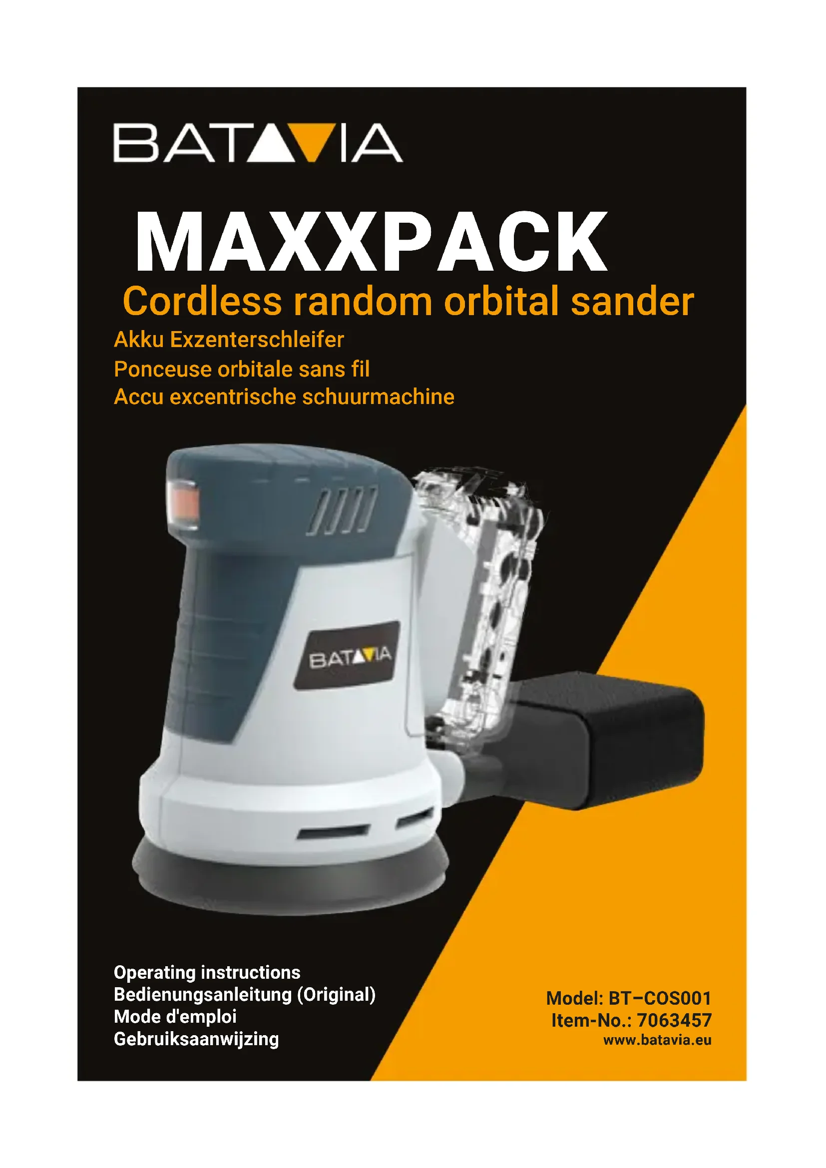 1× Ponceuse orbitale sans fil 1× Sac de collecte de poussière 1× Manuel d’instructions