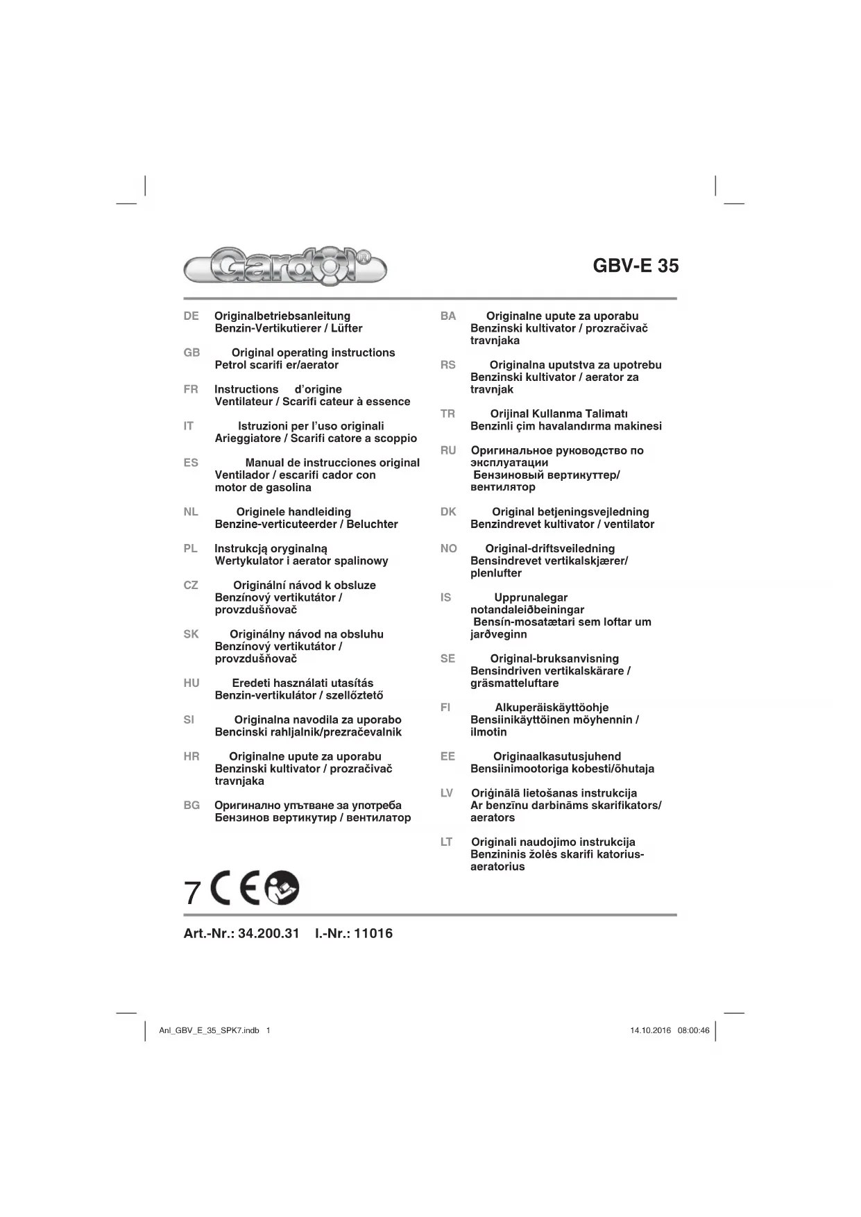 GBV-E 35 - Scarificateur Gardol - Notice d'utilisation et mode d'emploi gratuit