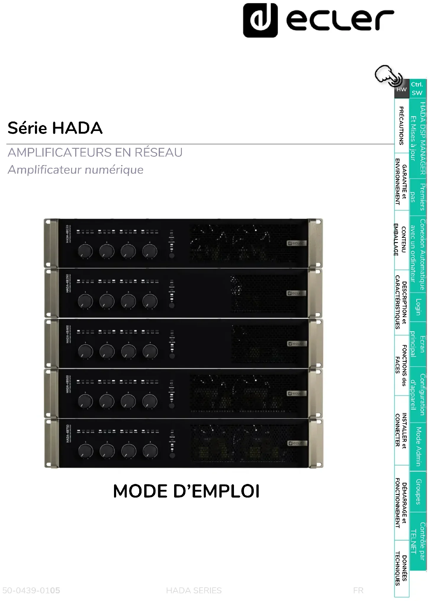 HADA DSP MANAGER Et Mises à jour PRÉCAUTIONS CONTENU EMBALLAGE DESCRIPTION et CARACTÉRISTIQUES FONCTIONS des FACES INSTALLER et CONNECTER DÉMARRAGE et FONCTIONNEMENT