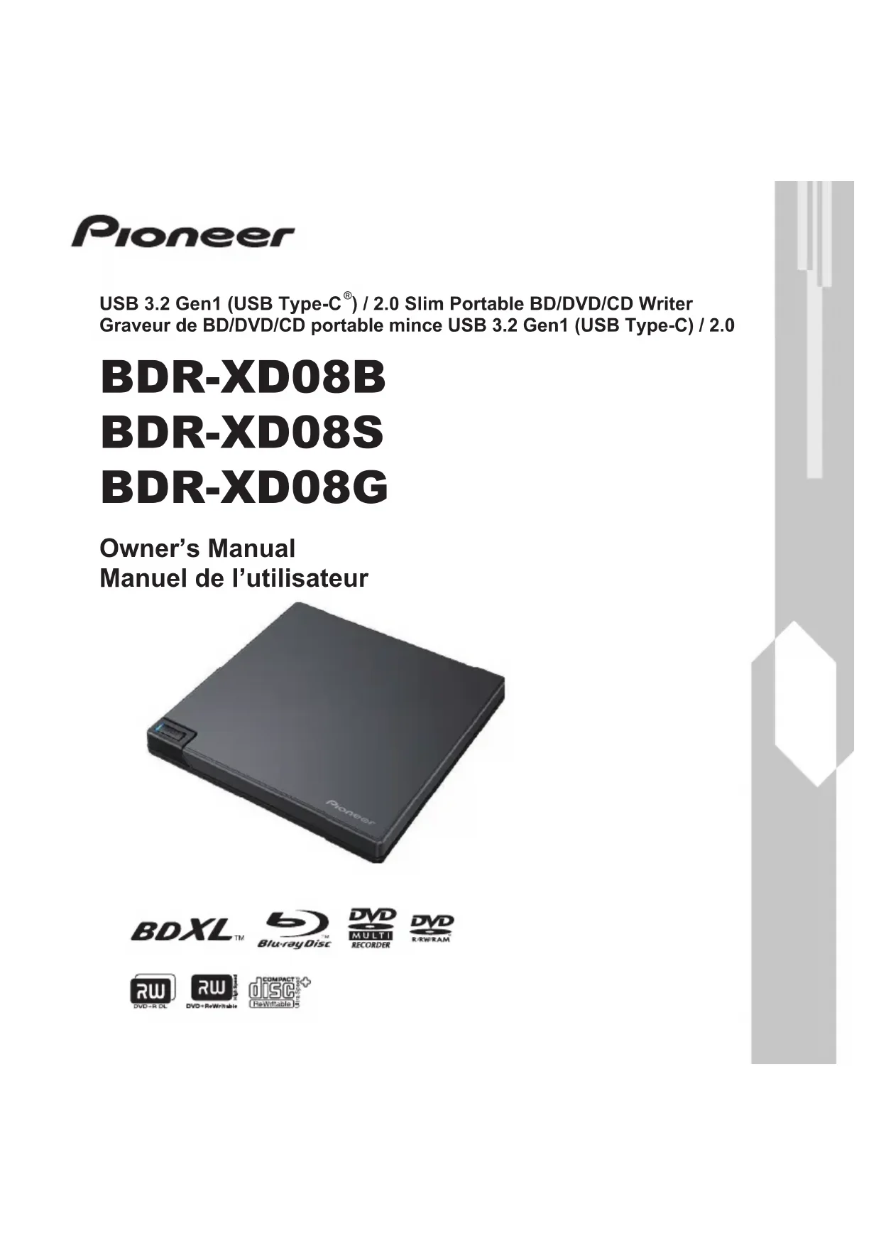 Retrouvez gratuitement la notice de l'appareil BDR-XD08B PIONEER au format PDF.