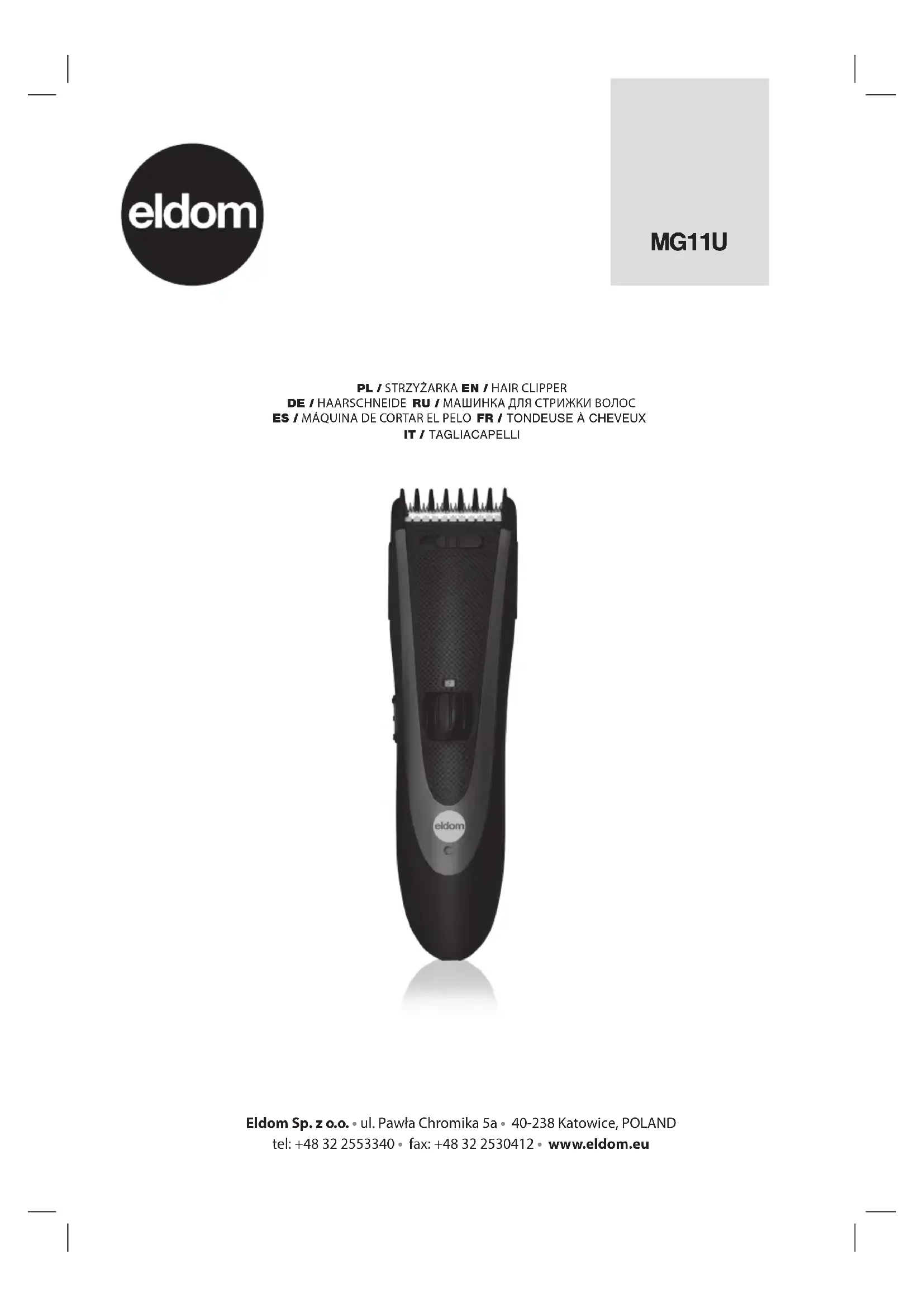 Téléchargez la notice de votre Tondeuse au format PDF gratuitement ! Retrouvez votre notice MG11U - Eldom et reprennez votre appareil électronique en main. Sur cette page sont publiés tous les documents nécessaires à l'utilisation de votre appareil MG11U de la marque Eldom.
