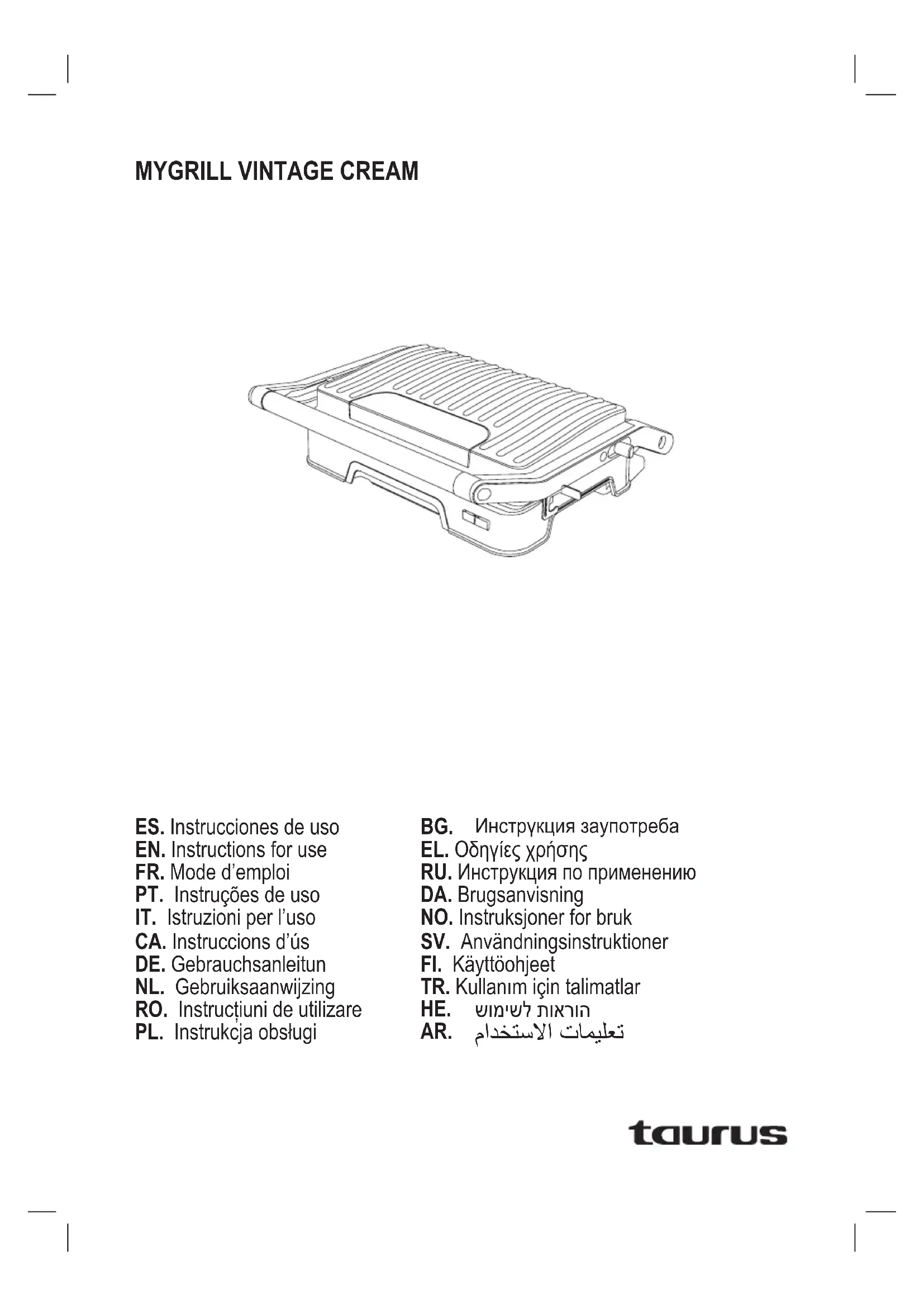 Retrouvez gratuitement la notice de l'appareil MyGrill Vintage TAURUS au format PDF.