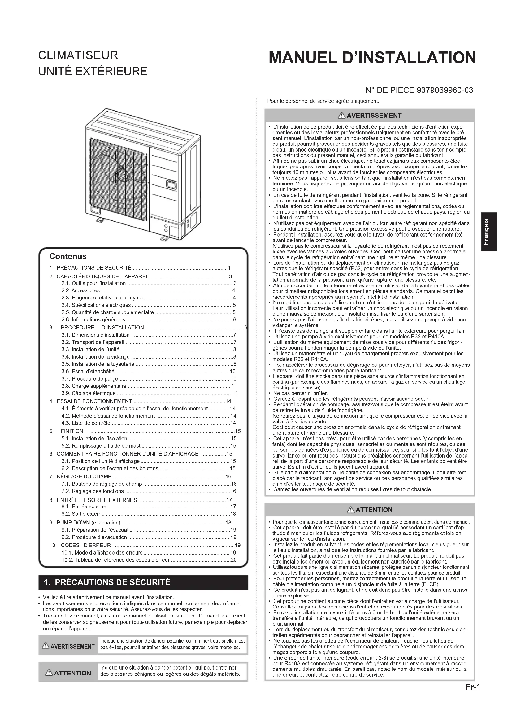 - Cet produit fait partie d’un ensemble formant un climatiseur. Le produit ne doit pas être installé isolément ou avec un équipement non autorisé par le fabricant.