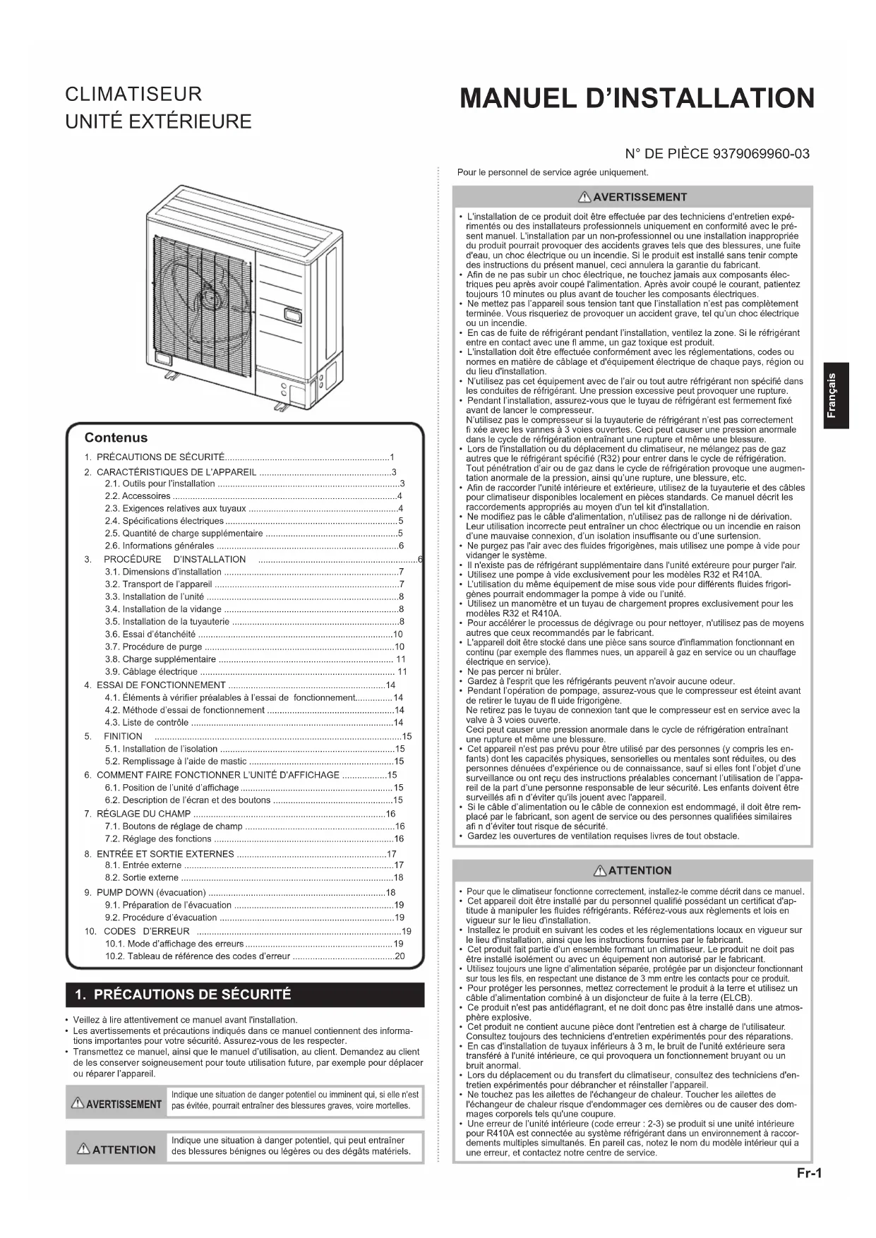 - Cet produit fait partie d’un ensemble formant un climatiseur. Le produit ne doit pas être installé isolément ou avec un équipement non autorisé par le fabricant.