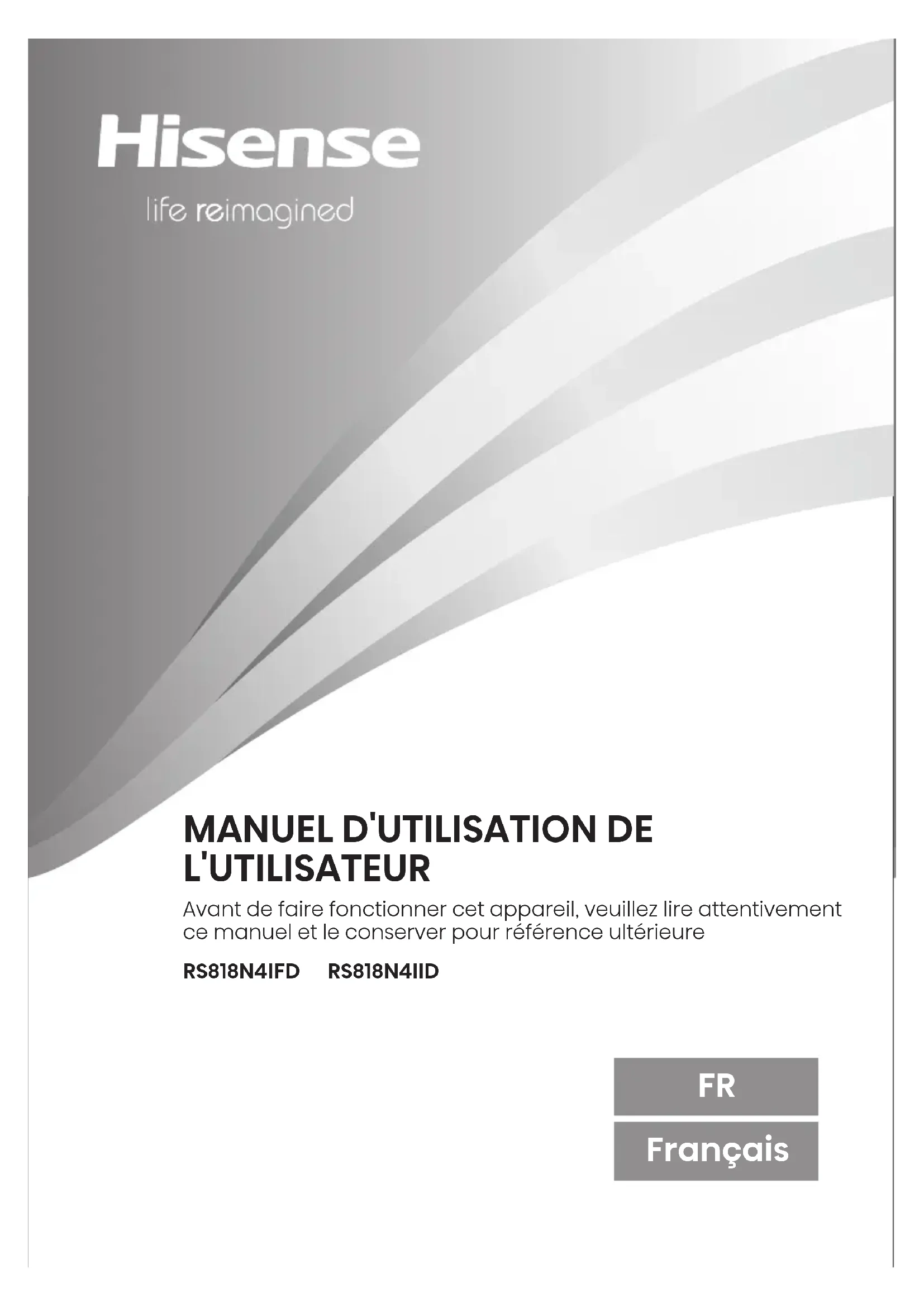 Retrouvez gratuitement la notice de l'appareil RS818N4IFD HISENSE au format PDF.