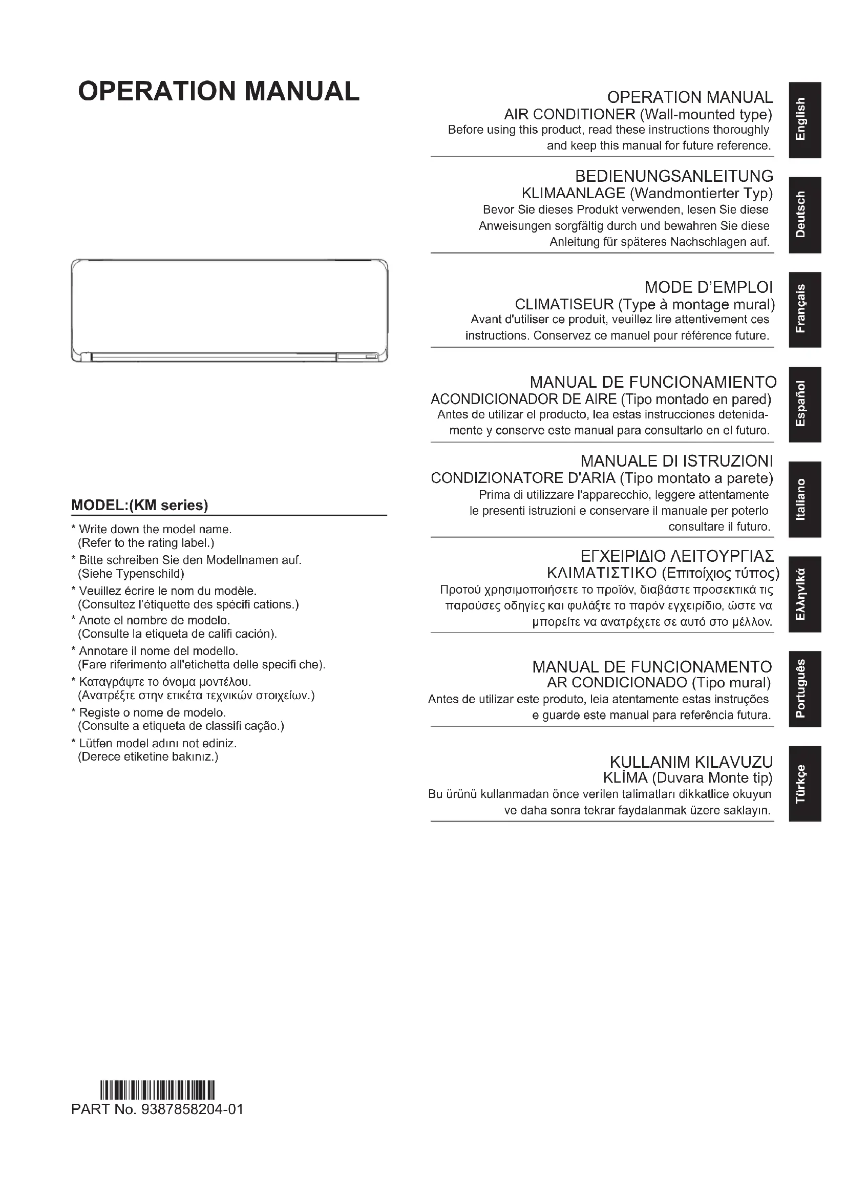 CLIMATISEUR (Type à montage mural) Avant d'utiliser ce produit, veuillez lire attentivement ces instructions. Conservez ce manuel pour référence future.