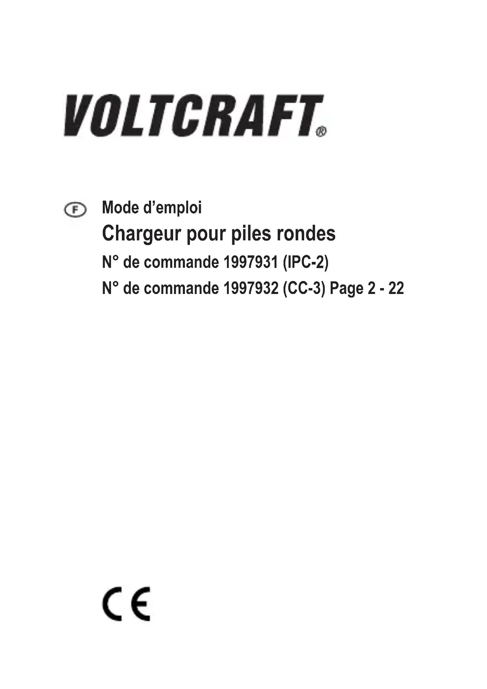 Mode d’emploi Chargeur pour piles rondes N° de commande 1997931 (IPC-2) N° de commande 1997932 (CC-3) Page 2 - 22Table des matières Page