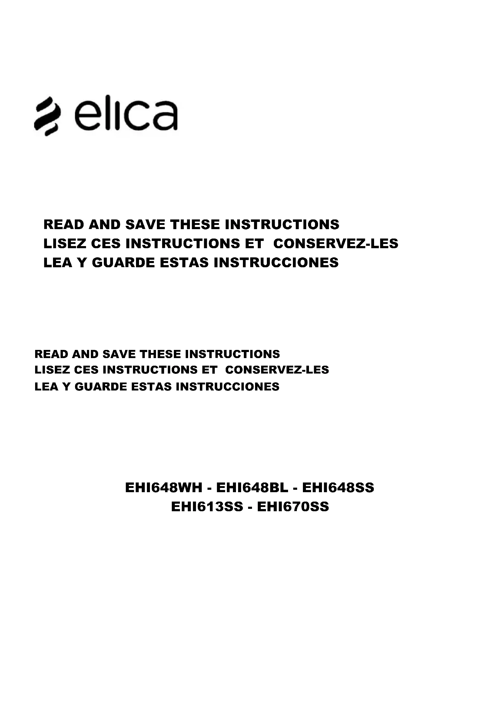 Retrouvez gratuitement la notice de l'appareil EHI613SS ELICA au format PDF.