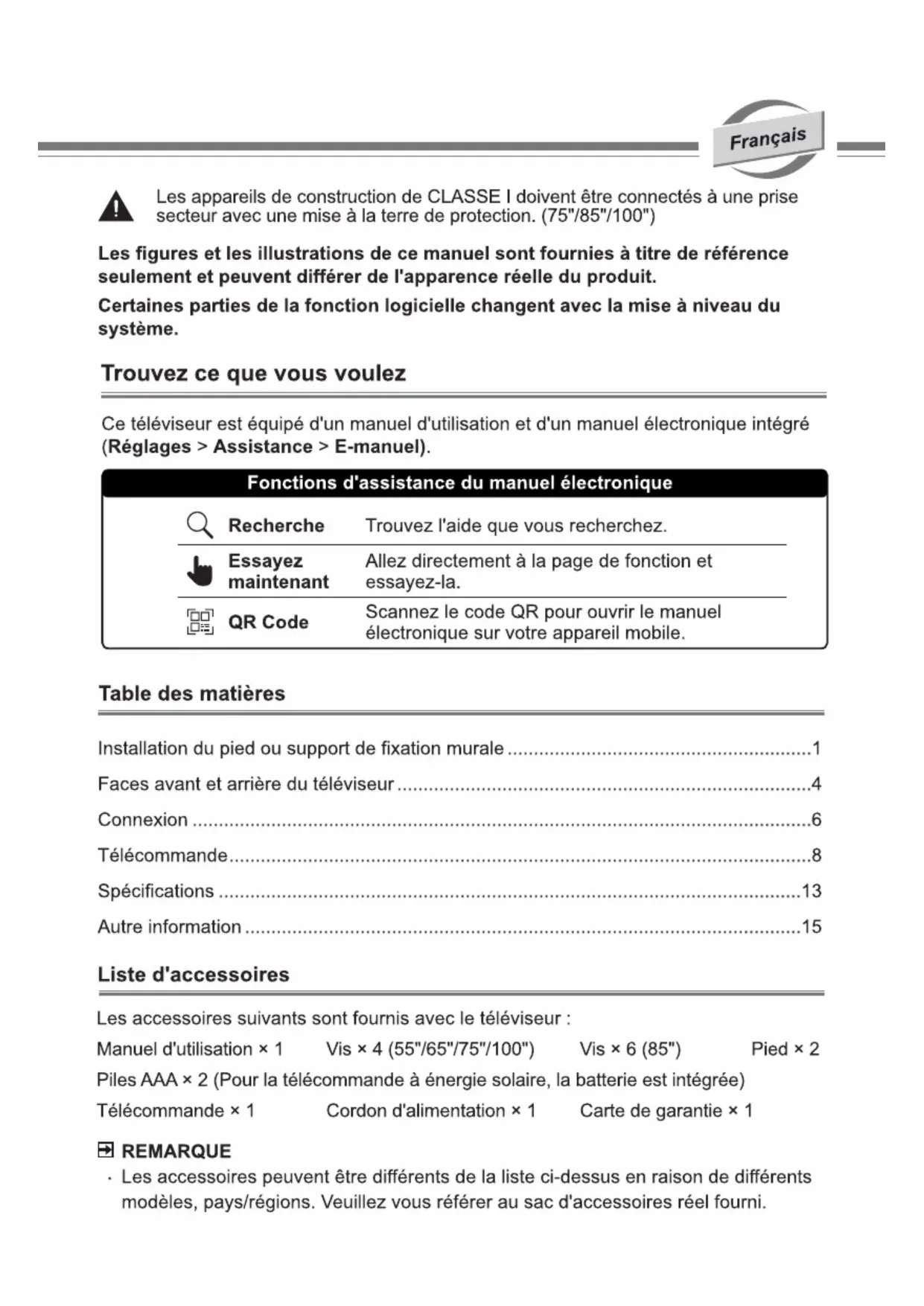 | Accessoires inclus | Télécommande, câbles HDMI, manuel d'utilisation |