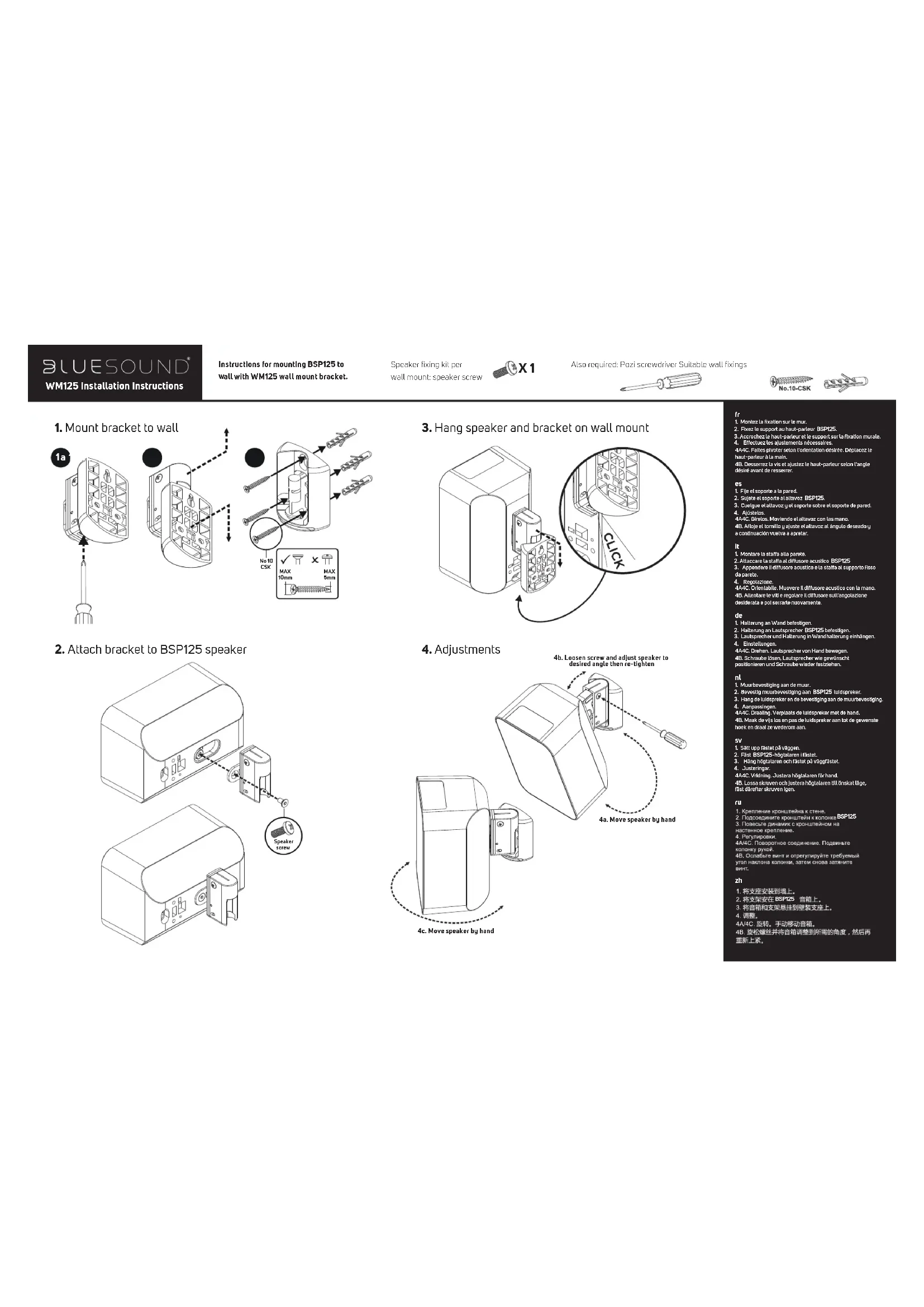 WM125 - Support mural Bluesound - Notice d'utilisation et mode d'emploi gratuit