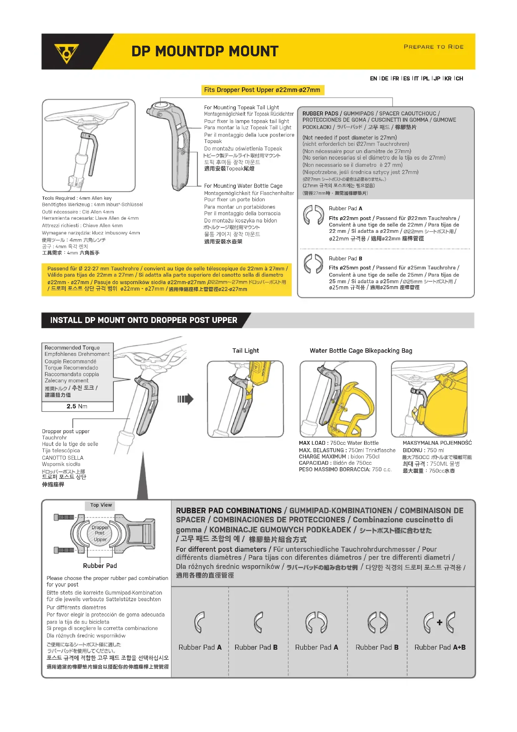 Retrouvez gratuitement la notice de l'appareil DP MOUNT Topeak au format PDF.