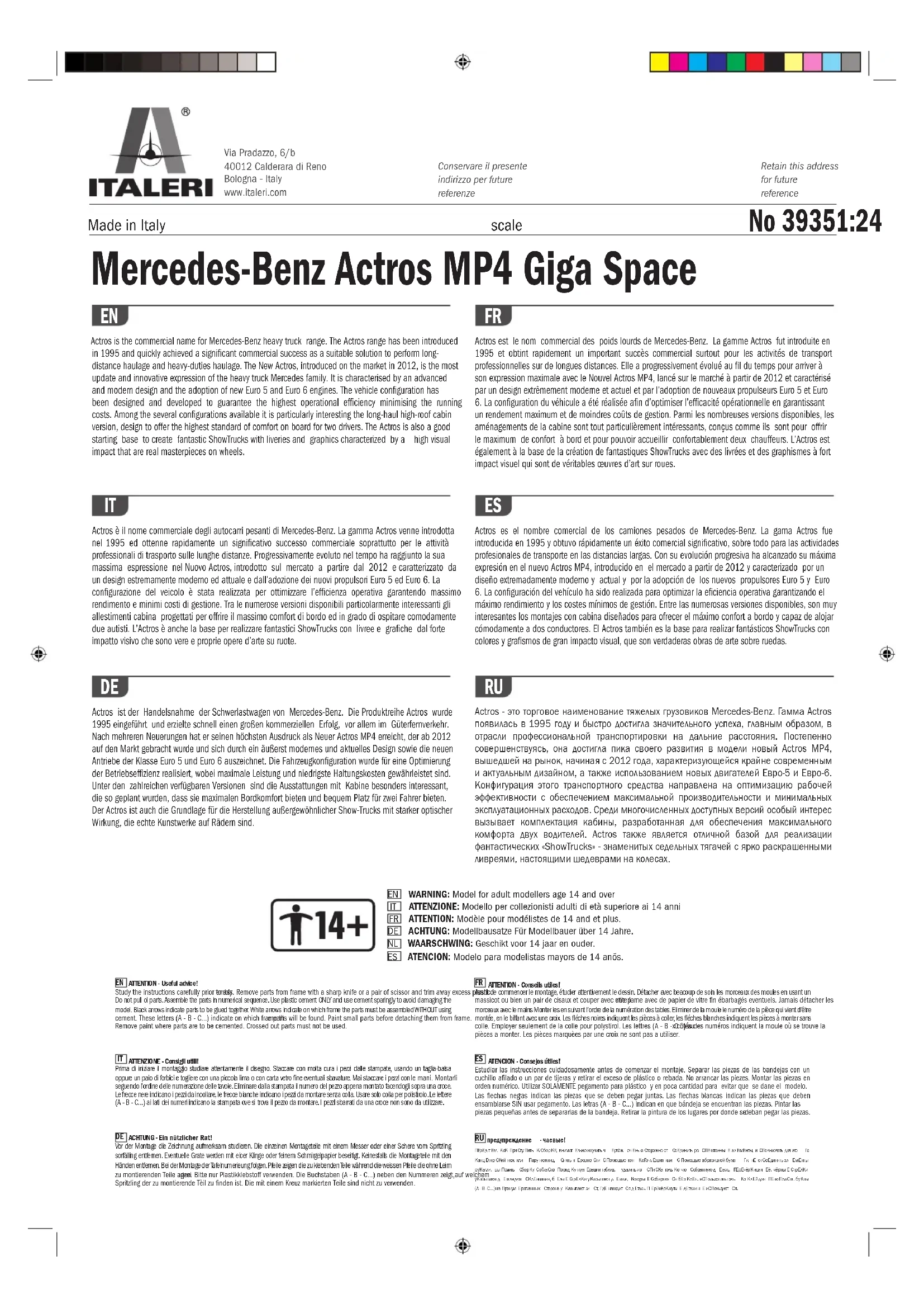 Mercedes-Benz Actros MP4 Giga Space - Maquettisme Italeri - Notice d'utilisation et mode d'emploi gratuit