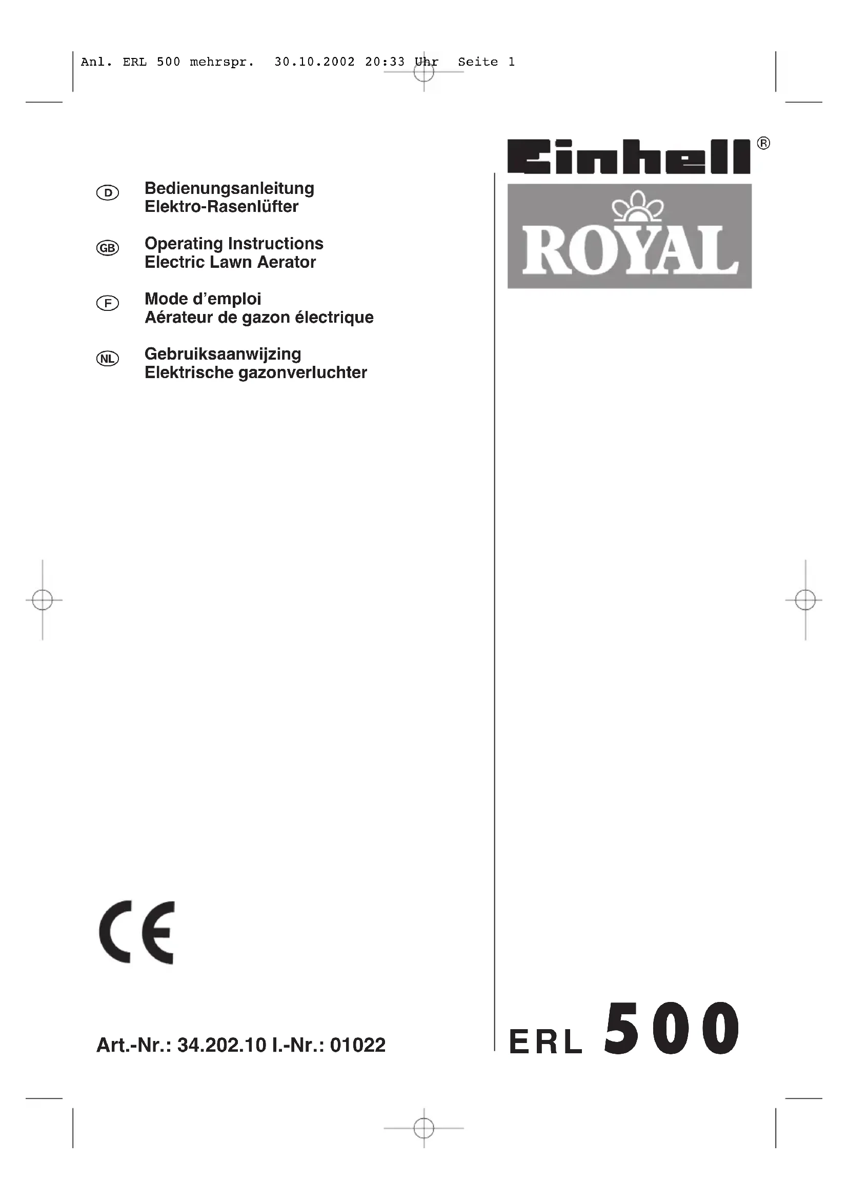 MODE D'EMPLOI ERL 500 EINHELL
