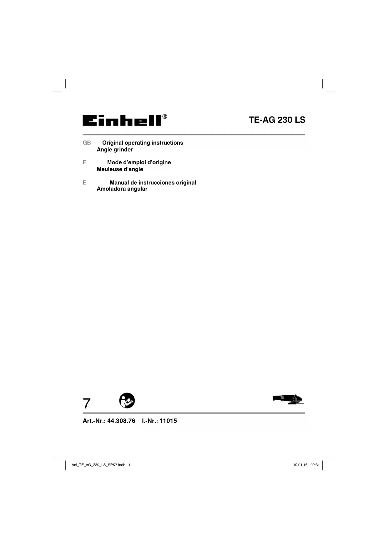 Téléchargez la notice de votre Broyeur au format PDF gratuitement ! Retrouvez votre notice TE-AG 230 LS - EINHELL et reprennez votre appareil électronique en main. Sur cette page sont publiés tous les documents nécessaires à l'utilisation de votre appareil TE-AG 230 LS de la marque EINHELL.