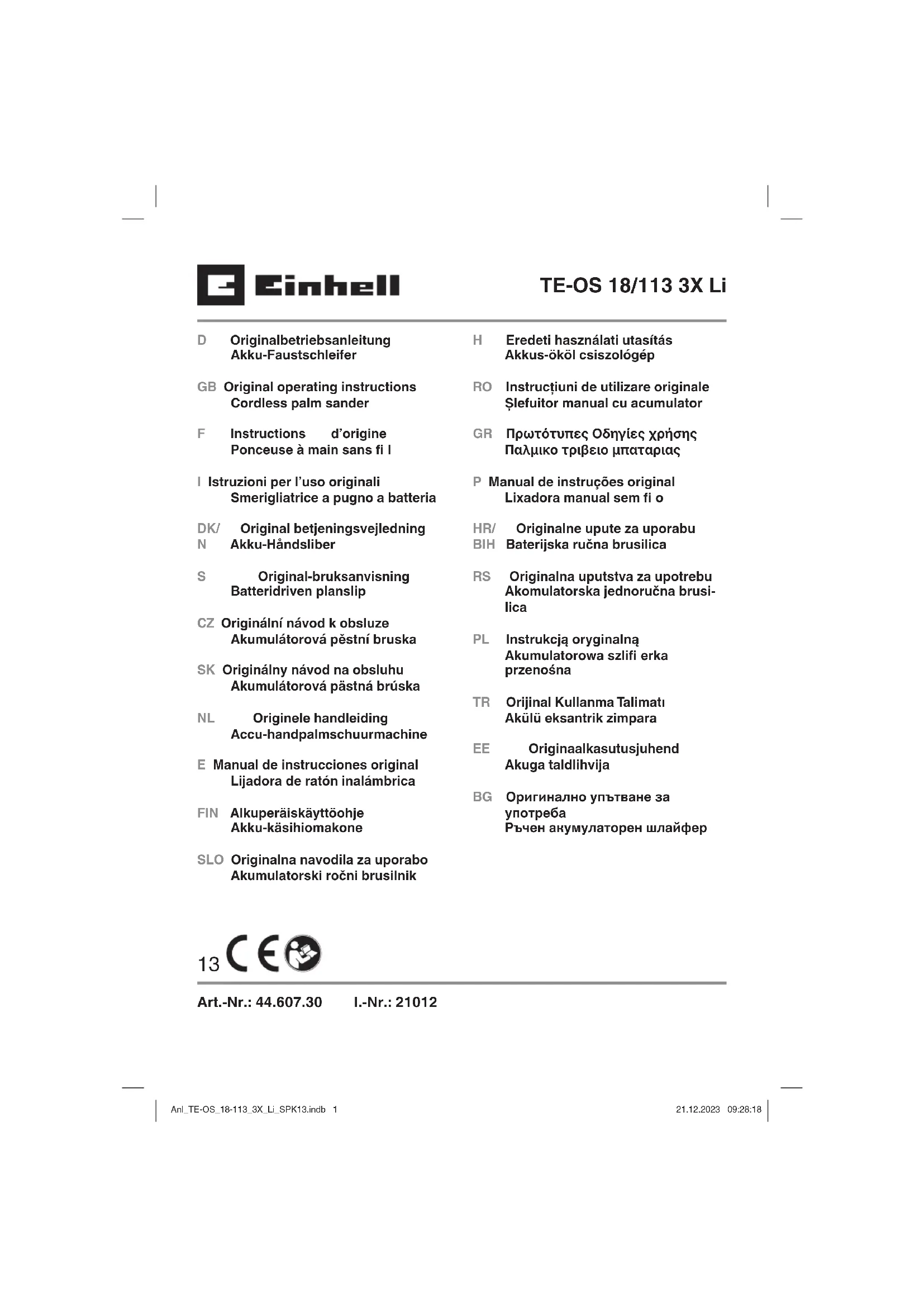 Toute réimpression ou autre reproduction de la documentation et des papiers joints aux produits, même sous forme d’extraits, est uniquement permise une fois l’accord explicite de l’Einhell Germany AG obtenu. Sous réserve de modifications techniques Anl_TE-OS_18-113_3X_Li_SPK13.indb 28Anl_TE-OS_18-113_3X_Li_SPK13.indb 28 21.12.2023 09:29:0021.12.2023 09:29:00F