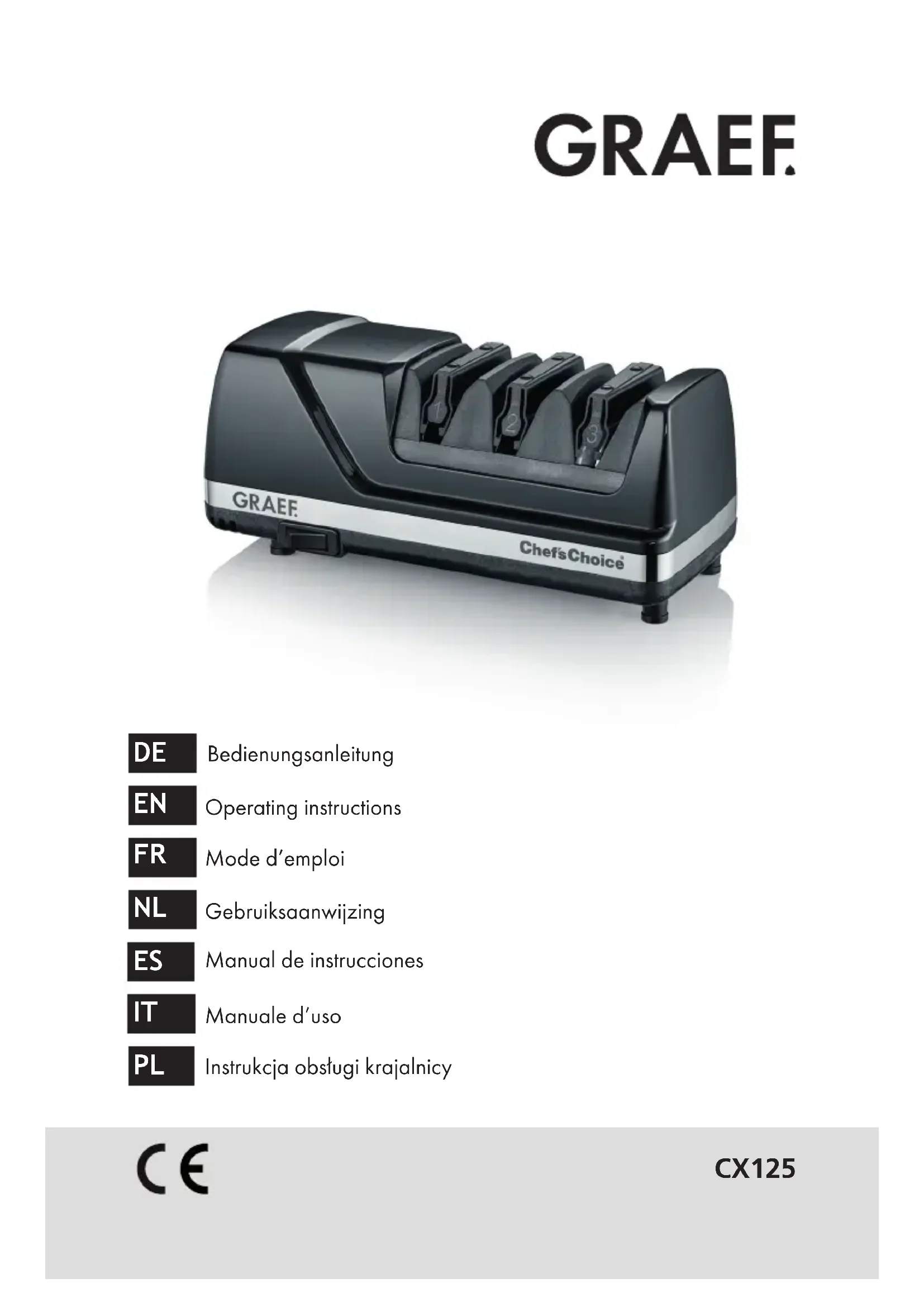 Retrouvez gratuitement la notice de l'appareil Chef's Choice CX125 GRAEF au format PDF.
