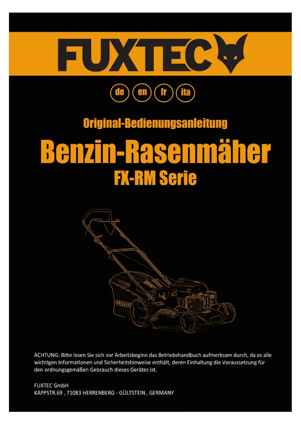 FUXTEC GmbH Kappstraße 69, 71083 Herrenberg-Gültstein, Allemagne Année de construction 2020Mode d'emploi original FUXTEC FX-RM Series_de_en_fr_ita_rev19