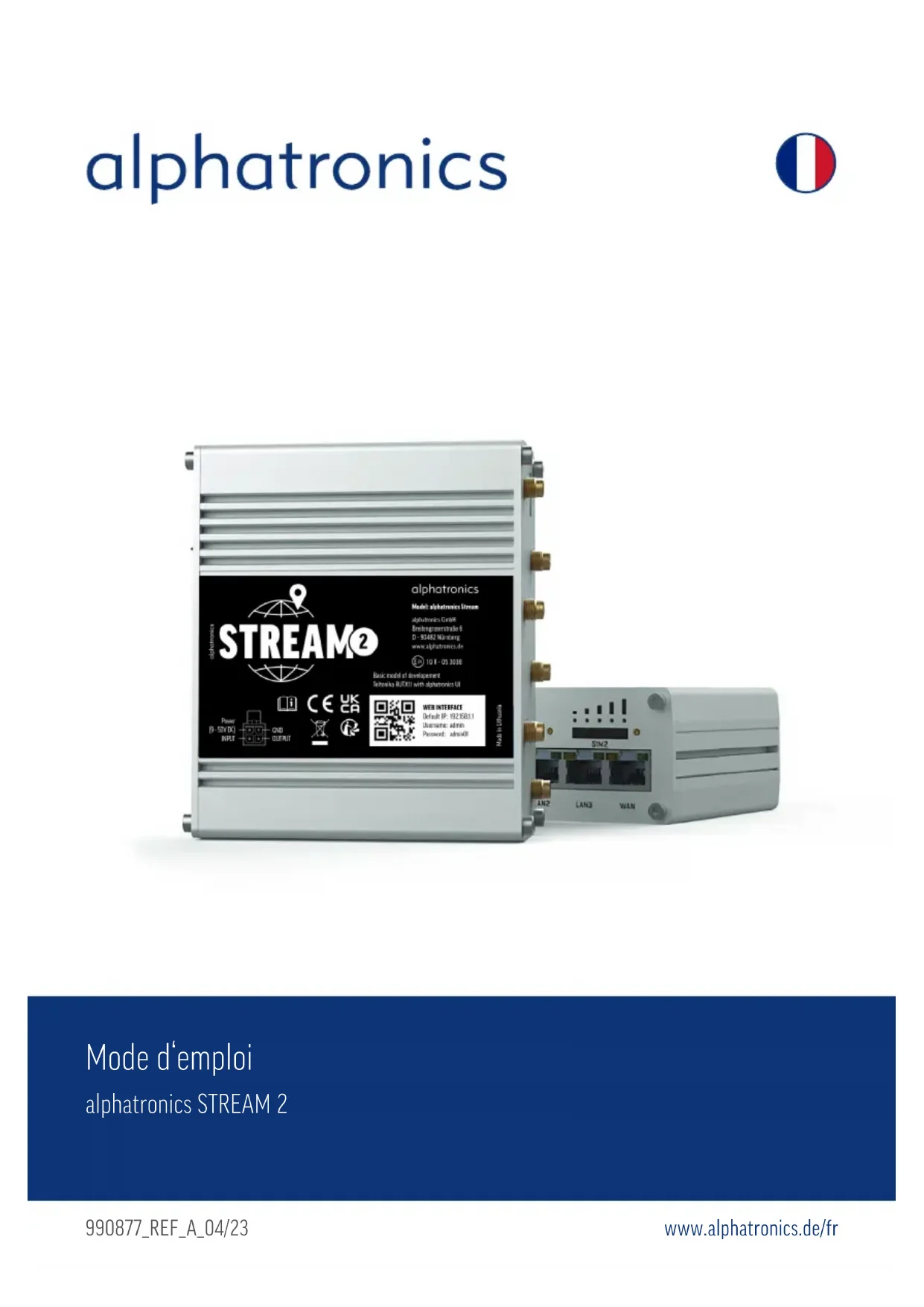 MODE D'EMPLOI STREAM 2 Alphatronics