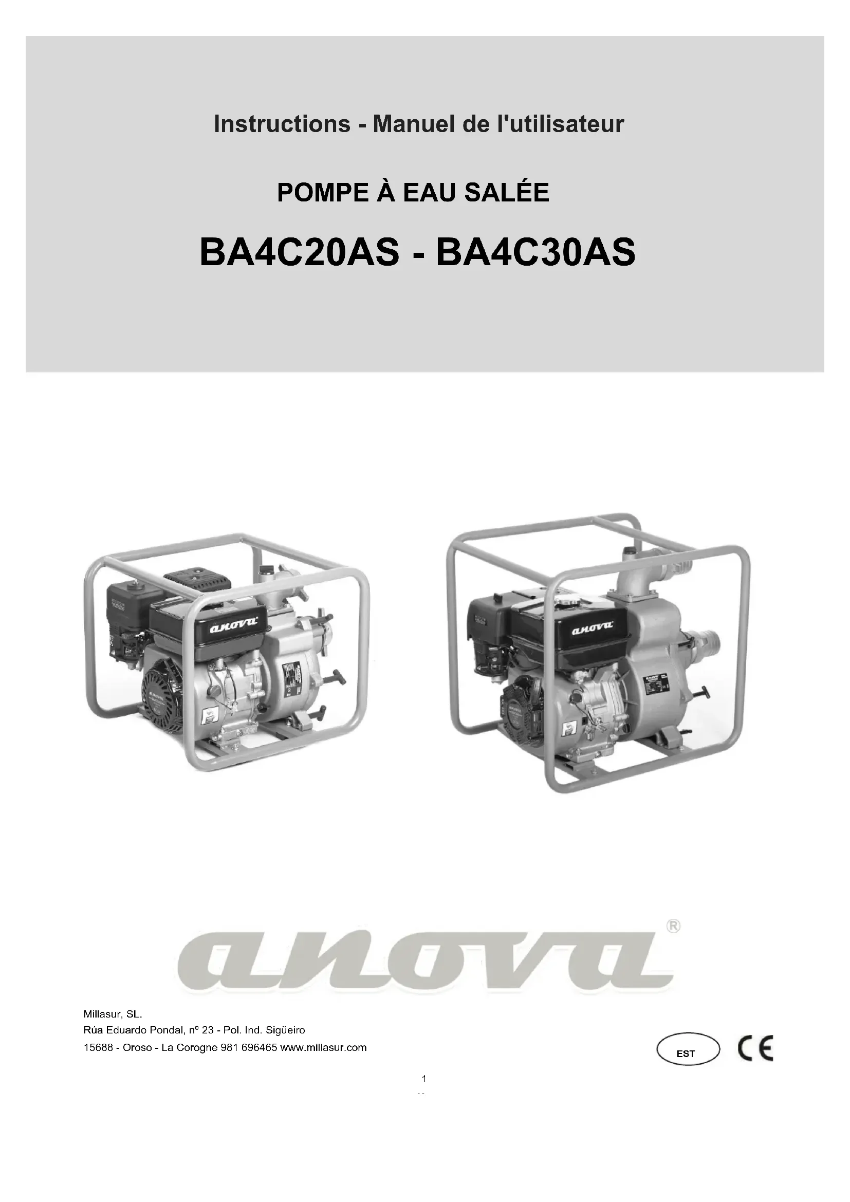 BA4C20AS - Pompe à eau Anova - Notice d'utilisation et mode d'emploi gratuit
