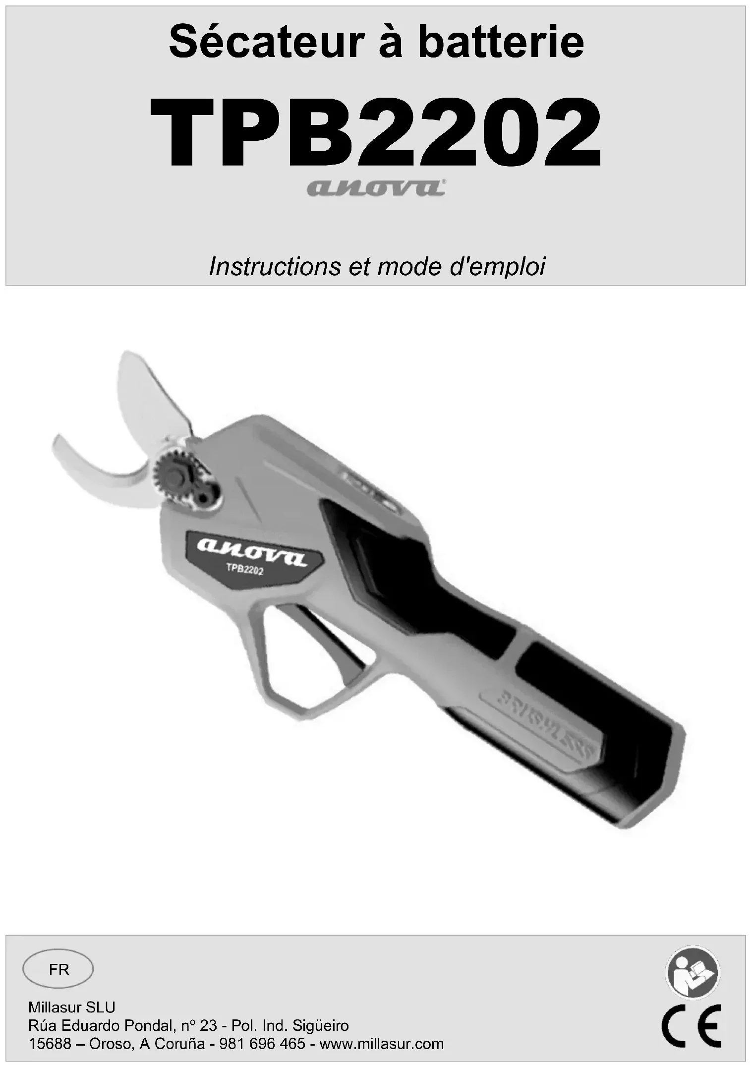 Sécateur à batterie Instructions et mode d'emploi Millasur SLU Rúa Eduardo Pondal, nº 23 - Pol. Ind. Sigüeiro 15688 – Oroso, A Coruña - 981 696 465 - www.millasur.com TPB2202 FRFR