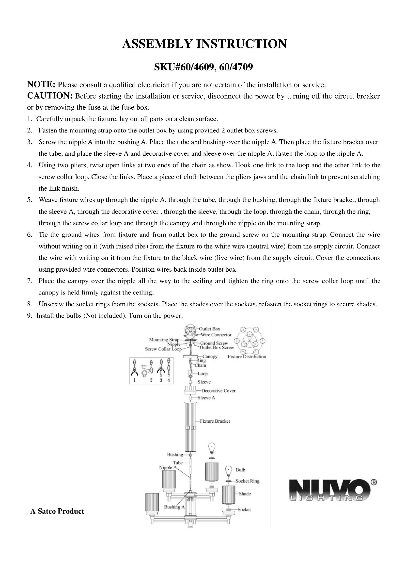 Wright 60/4709 - Lampe NUVO - Notice d'utilisation et mode d'emploi gratuit