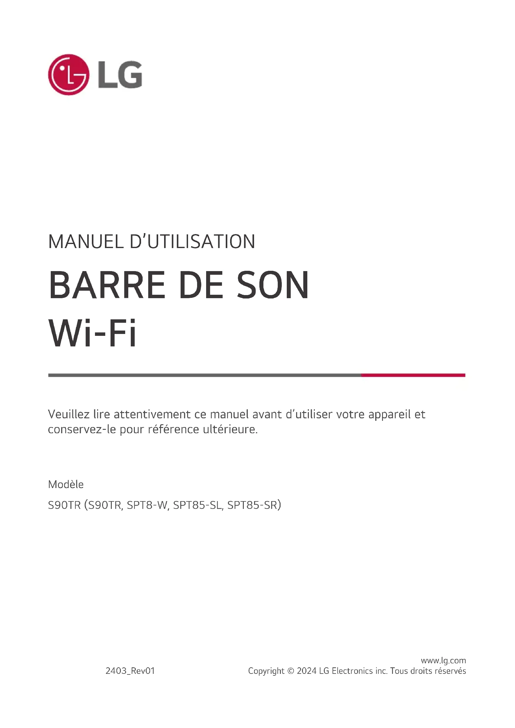 Wi-Fi Veuillez lire attentivement ce manuel avant d’utiliser votre appareil et conservez-le pour référence ultérieure. Modèle S90TR (S90TR, SPT8-W, SPT85-SL, SPT85-SR)