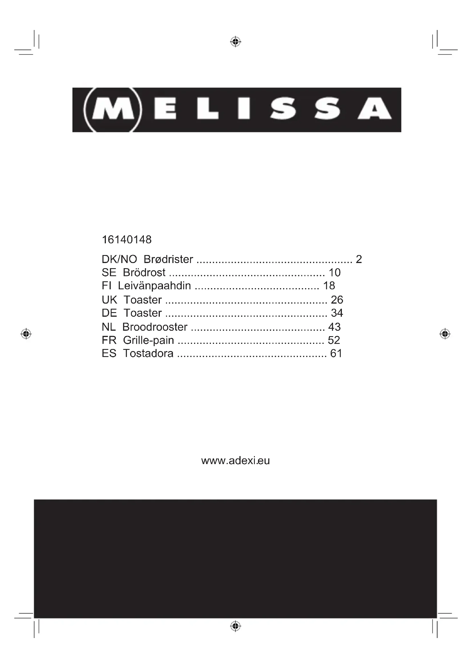 16140148 - Grille-pain Melissa - Notice d'utilisation et mode d'emploi gratuit