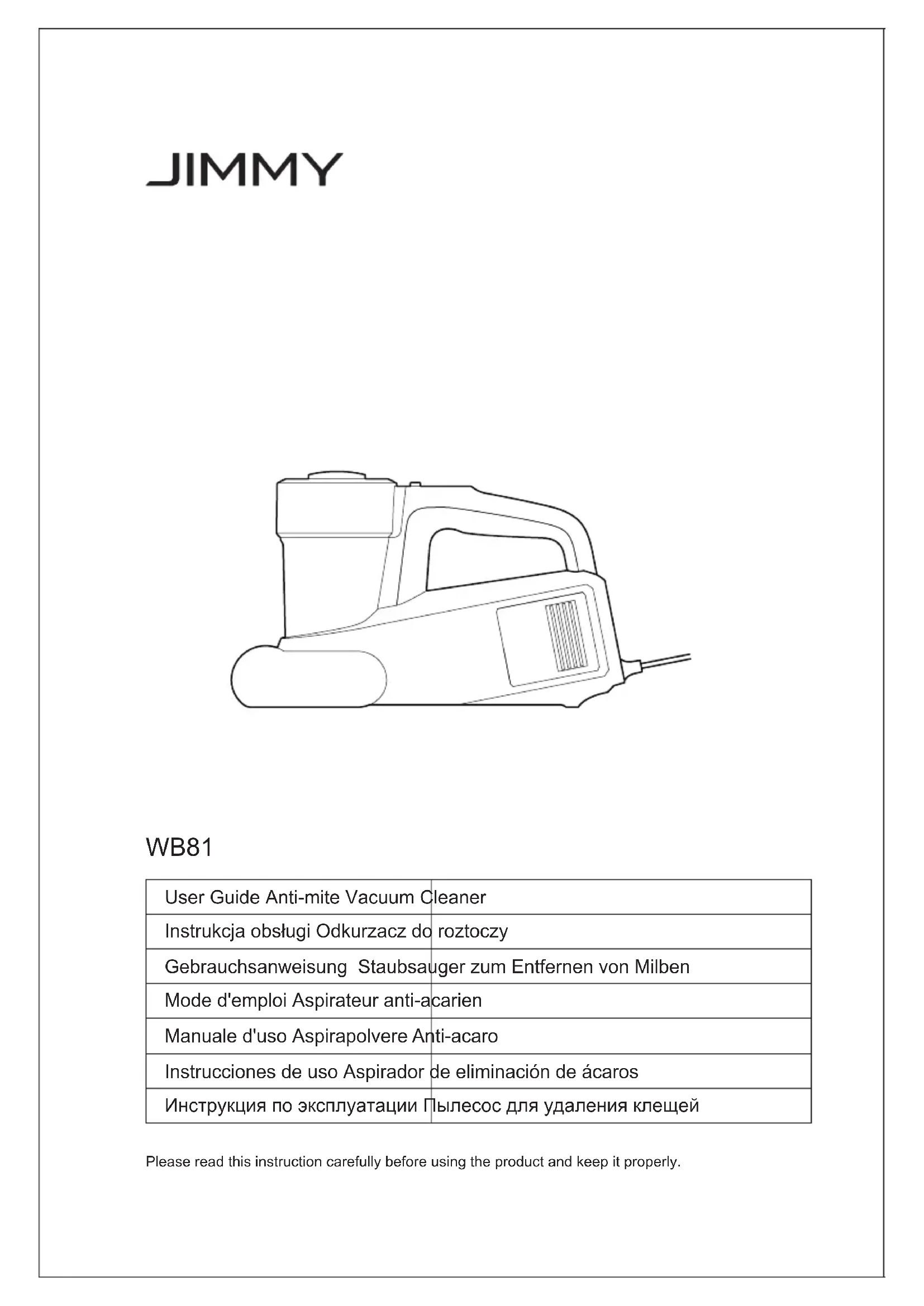 Téléchargez la notice de votre Aspirateur au format PDF gratuitement ! Retrouvez votre notice WB81 - JIMMY et reprennez votre appareil électronique en main. Sur cette page sont publiés tous les documents nécessaires à l'utilisation de votre appareil WB81 de la marque JIMMY.