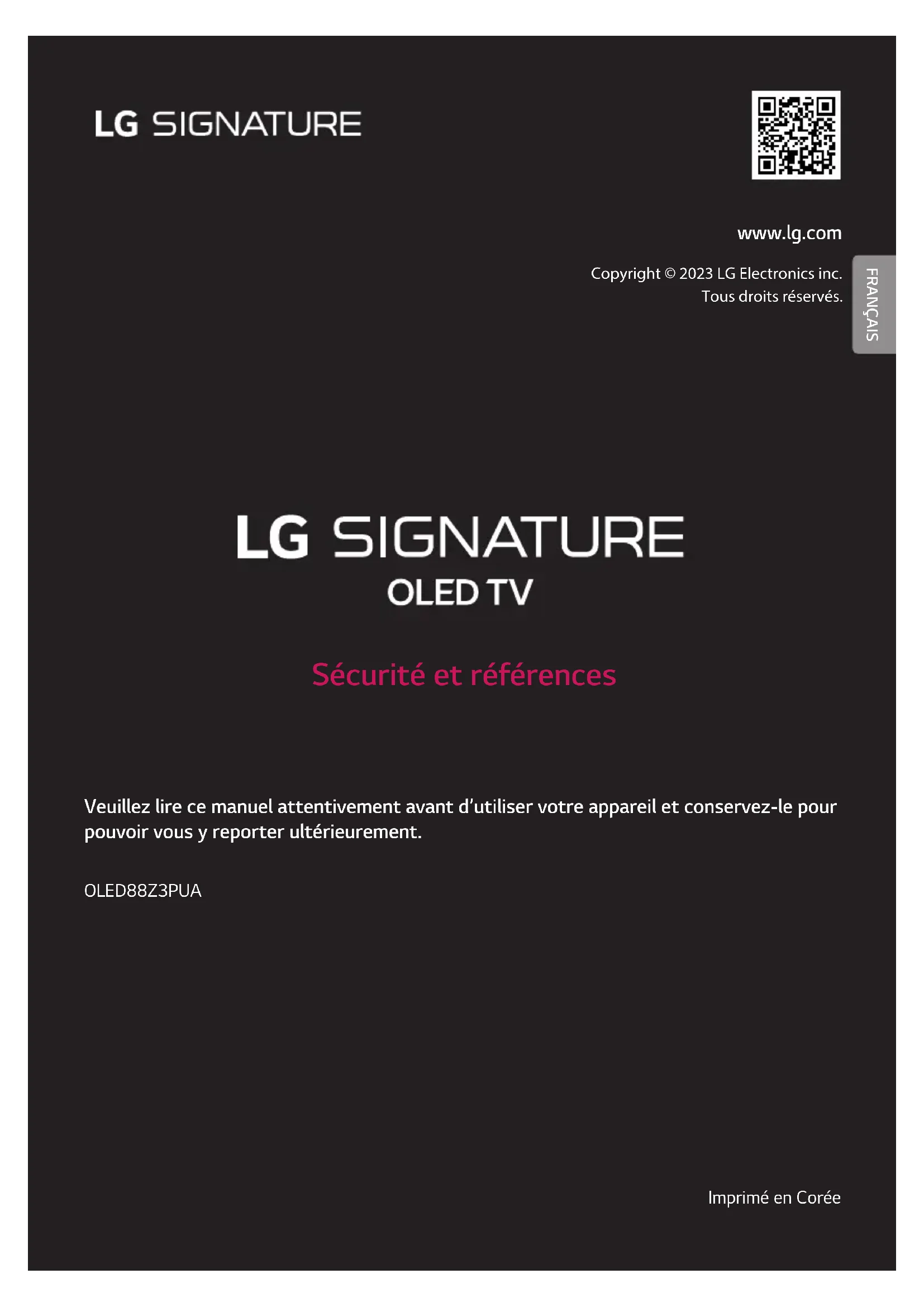 OLED88Z3PUA - Téléviseur LG - Notice d'utilisation et mode d'emploi gratuit
