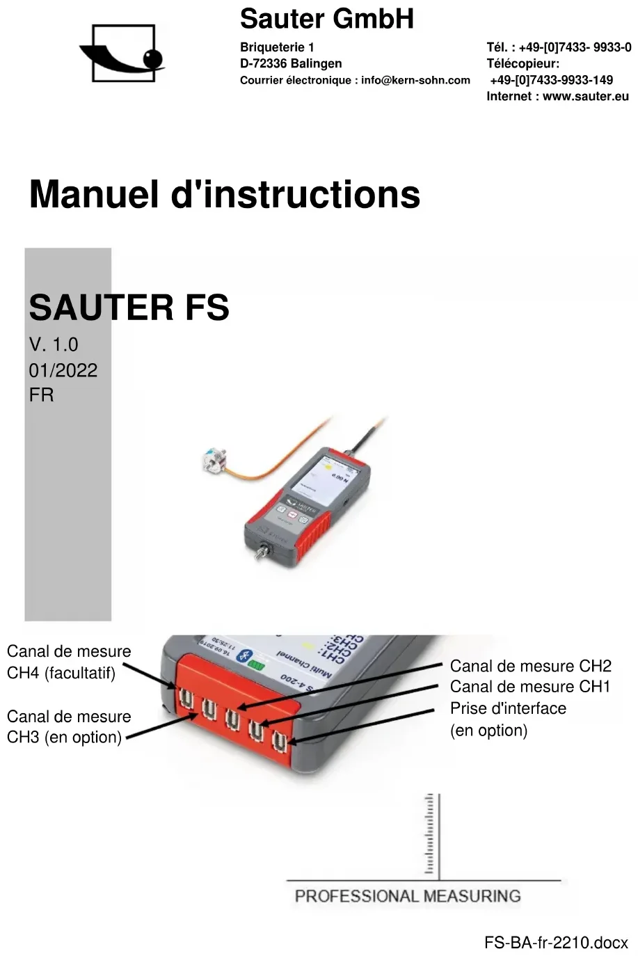 - Toutes nos félicitations pour votre acquisition d'un dynamomètre numérique avec cellule de mesure interne ou externe de SAUTER. Nous vous souhaitons beaucoup de plaisir avec votre appareil de mesure de qualité doté de nombreuses fonctions. Nous sommes toujours à votre disposition pour répondre à vos questions, souhaits ou suggestions. Table des matières : 1 Introduction p. 5
