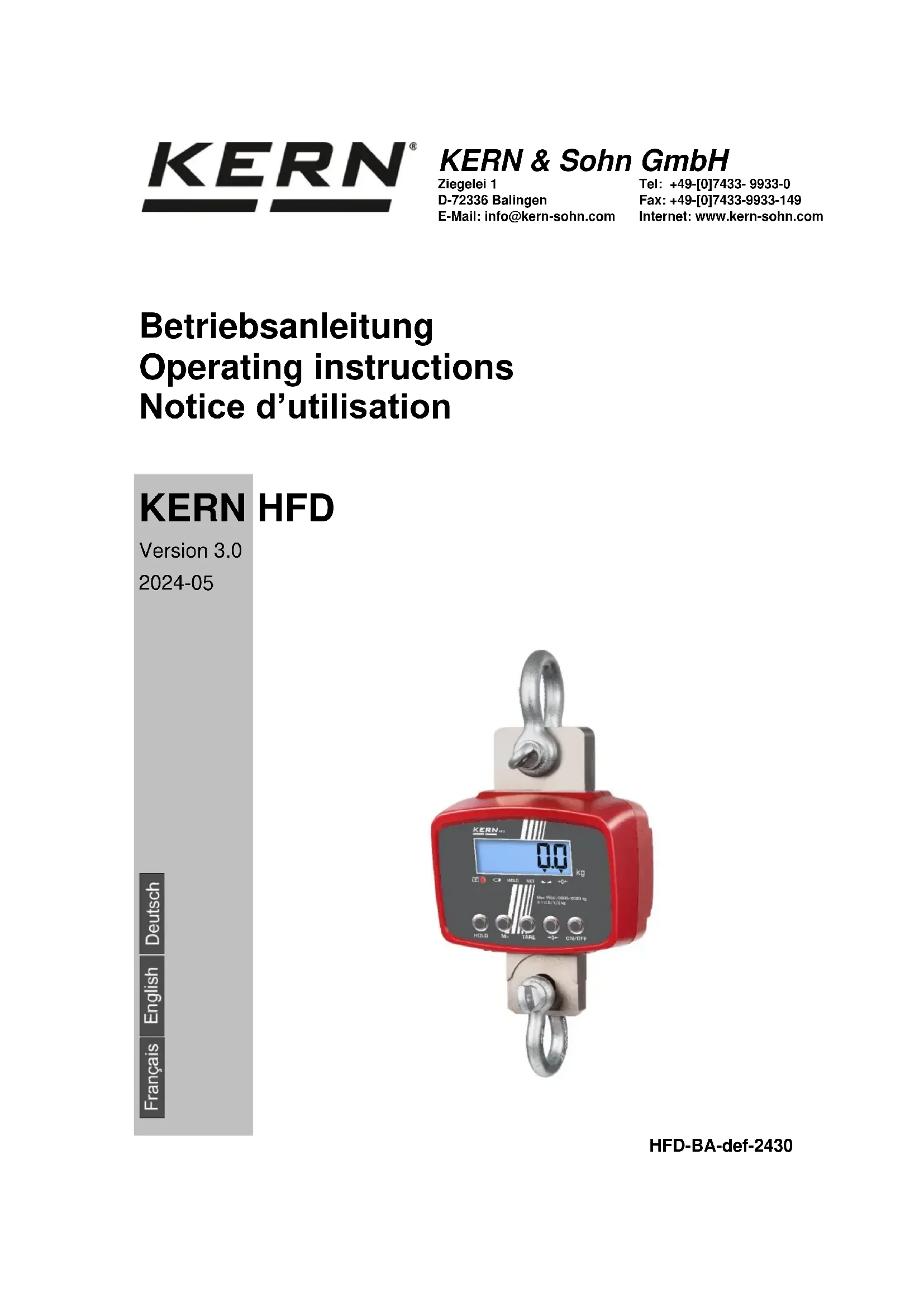 Retrouvez gratuitement la notice de l'appareil HFD 3T-3 Kern au format PDF.