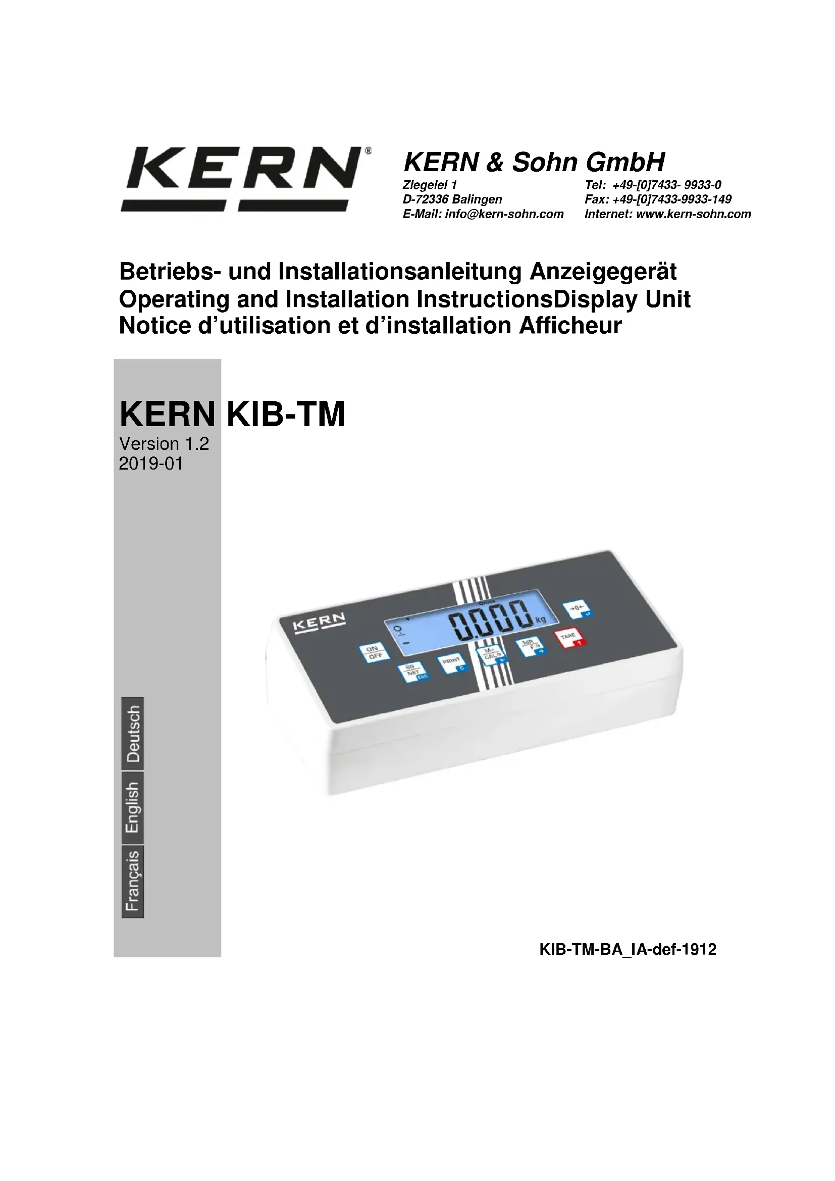 KERN KIB-TM Version 1.2 2019-01 Notice d’utilisation et d’installation Afficheur