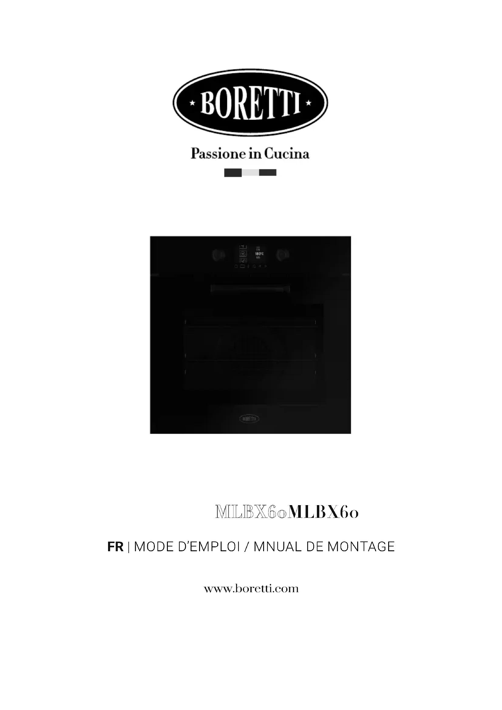 MLBX60MLBX60 FR | MODE D’EMPLOI / MNUAL DE MONTAGE www.boretti.com2 FRMLBX60 / Guide de l'utilisateur - Conseils d'installation Introduction Tous nos compliments pour votre achat d'un produit Boretti! Cet appareil de haute qualité vous accompagnera longtemps en cuisine en vous offrant d'excellentes prestations de manière sûre et fiable. L'installation et l'utilisation de l'appareil sont simples et rapides. Nous vous prions de lire attentivement ce manuel pour réaliser la bonne installation et la bonne utilisation de l'appareil, et pour le maintenir un bon état de fonctionnement. Les symboles suivants permettent de faciliter la lecture du manuel : Prescriptions importantes sur la sécurité individuelle et sur celle de l'appareil Informations générales Le Fabricant se réserve le droit d'apporter. sans préavis. toutes les modifications qu'il jugera utiles à ses produits. Les dessins. les schémas d'installation et les tableaux contenus dans ce manuel sont fournis à titre indicatif. Les installations de branchement de l'édifice doivent être conformes aux normes nationales en vigueur. IL EST interdit de copier et/ou de reproduire, même partiellement, les contenus du présent manuel, et/ou de les divulguer à des tiers sans l'autorisation du fabricant. Cet appareil est conforme aux prescriptions des directives communautaires 2014/35/UE pour la basse tension, 2014/30/UE pour la compatibilité électromagnétique. Les instructions contenues dans ce manuel ne sont valables que dans le pays d'installation de l'appareil.3 FRMLBX60 / Guide de l'utilisateur - Conseils d'installation Contents