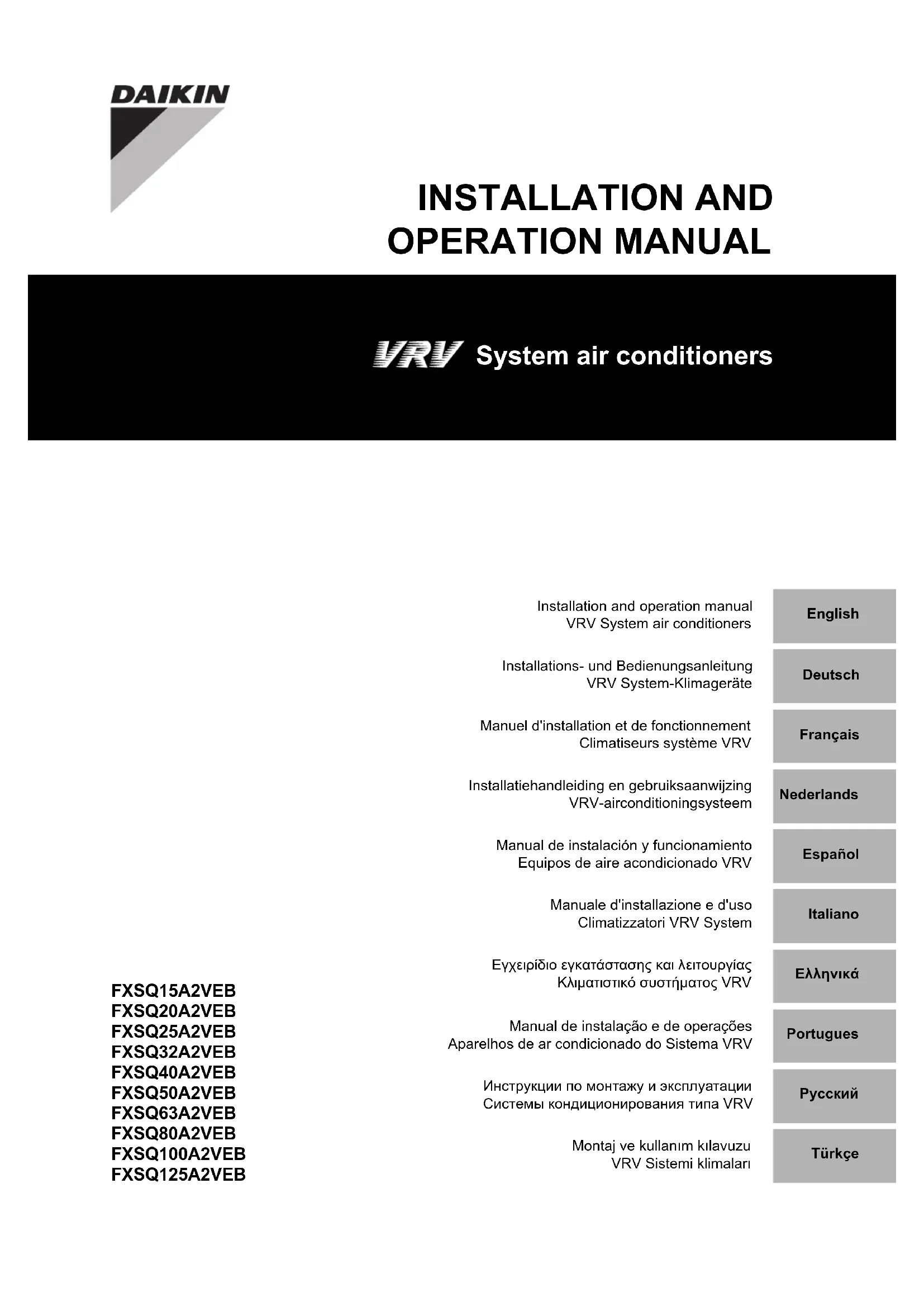 FXSQ140A2VEB - Climatisation DAIKIN - Notice d'utilisation et mode d'emploi gratuit