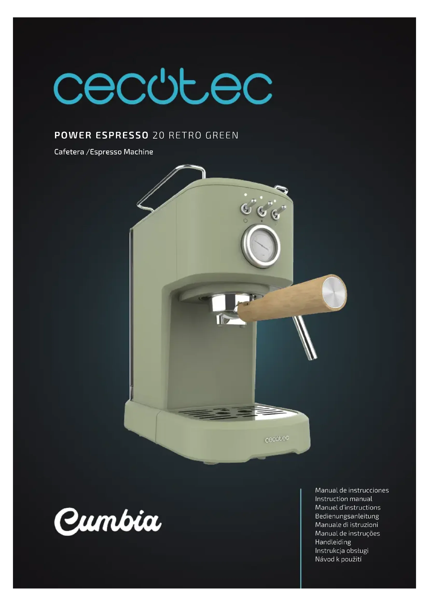 Retrouvez gratuitement la notice de l'appareil Power Espresso 20 Retro Green CECOTEC au format PDF.