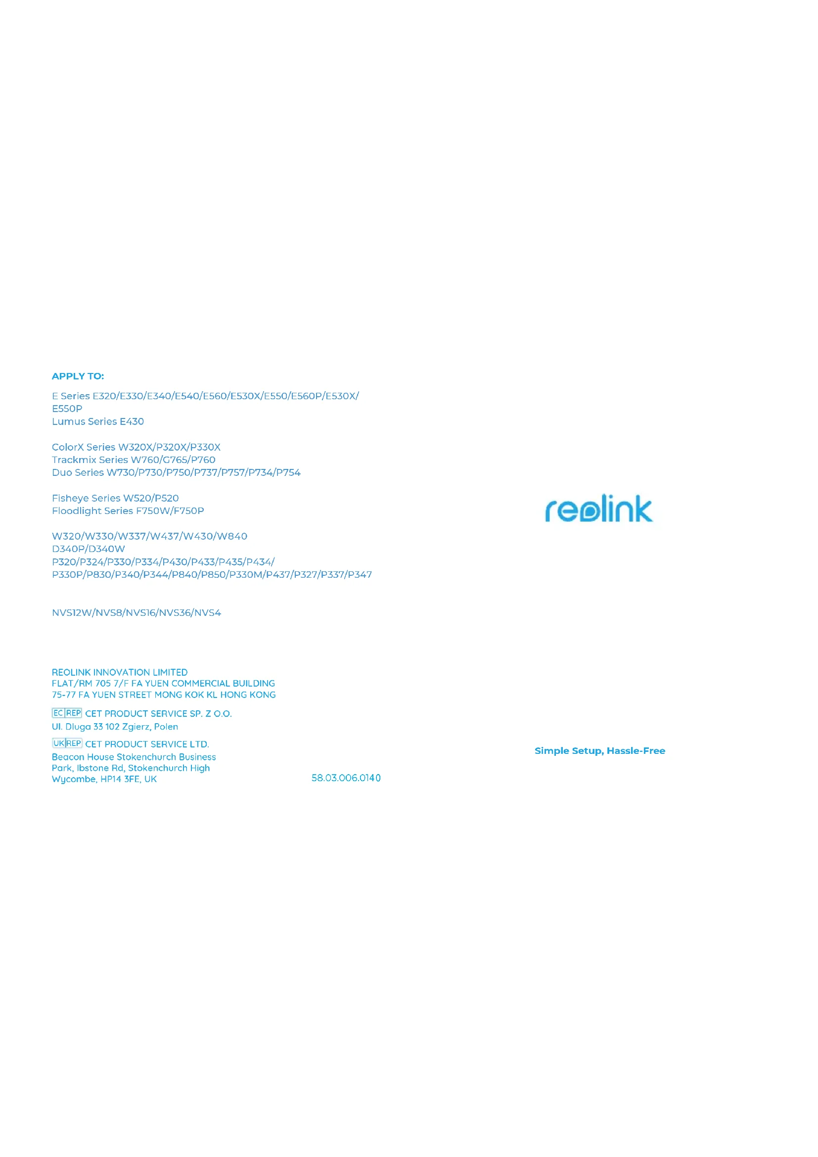 Retrouvez gratuitement la notice de l'appareil W437 REOLINK au format PDF.