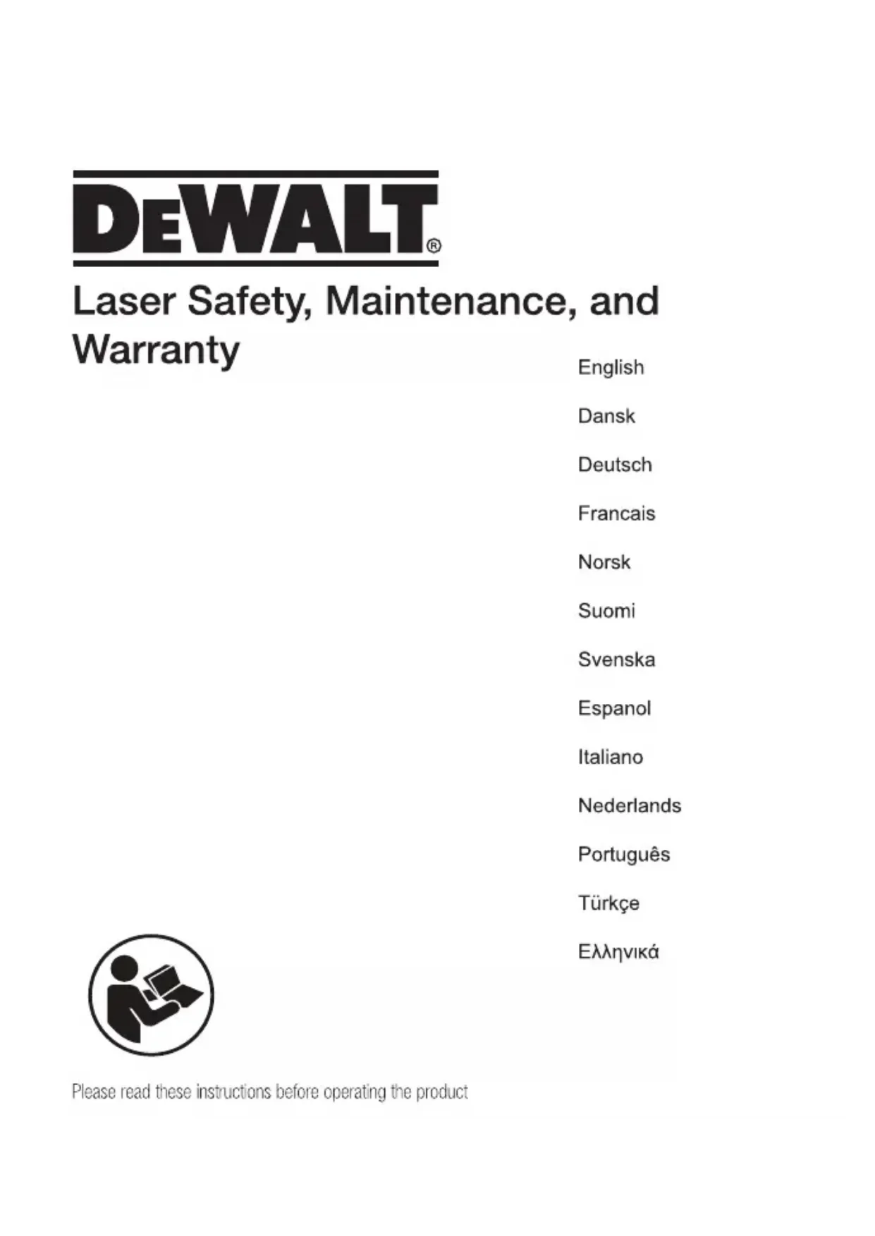 Téléchargez la notice de votre Pointeur laser au format PDF gratuitement ! Retrouvez votre notice DW03601CG - DEWALT et reprennez votre appareil électronique en main. Sur cette page sont publiés tous les documents nécessaires à l'utilisation de votre appareil DW03601CG de la marque DEWALT.