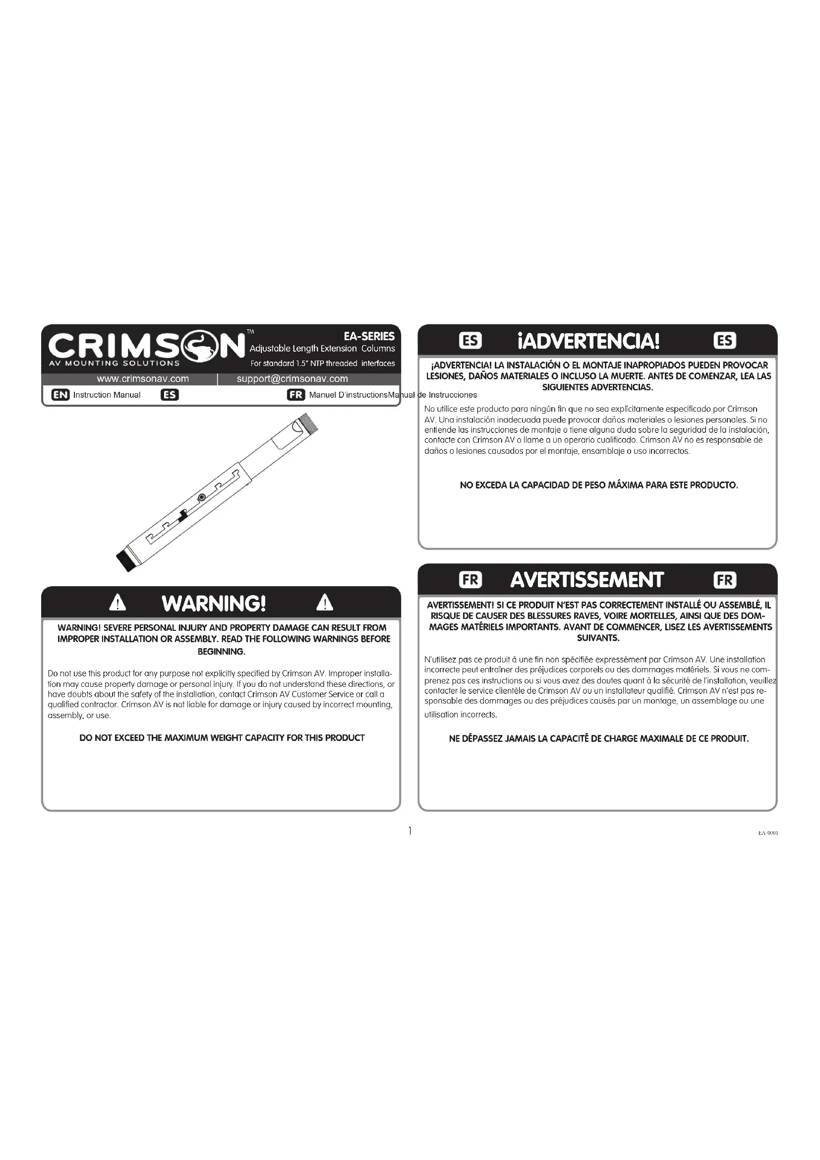 Téléchargez la notice de votre Meuble TV au format PDF gratuitement ! Retrouvez votre notice EA68 - Crimson et reprennez votre appareil électronique en main. Sur cette page sont publiés tous les documents nécessaires à l'utilisation de votre appareil EA68 de la marque Crimson.