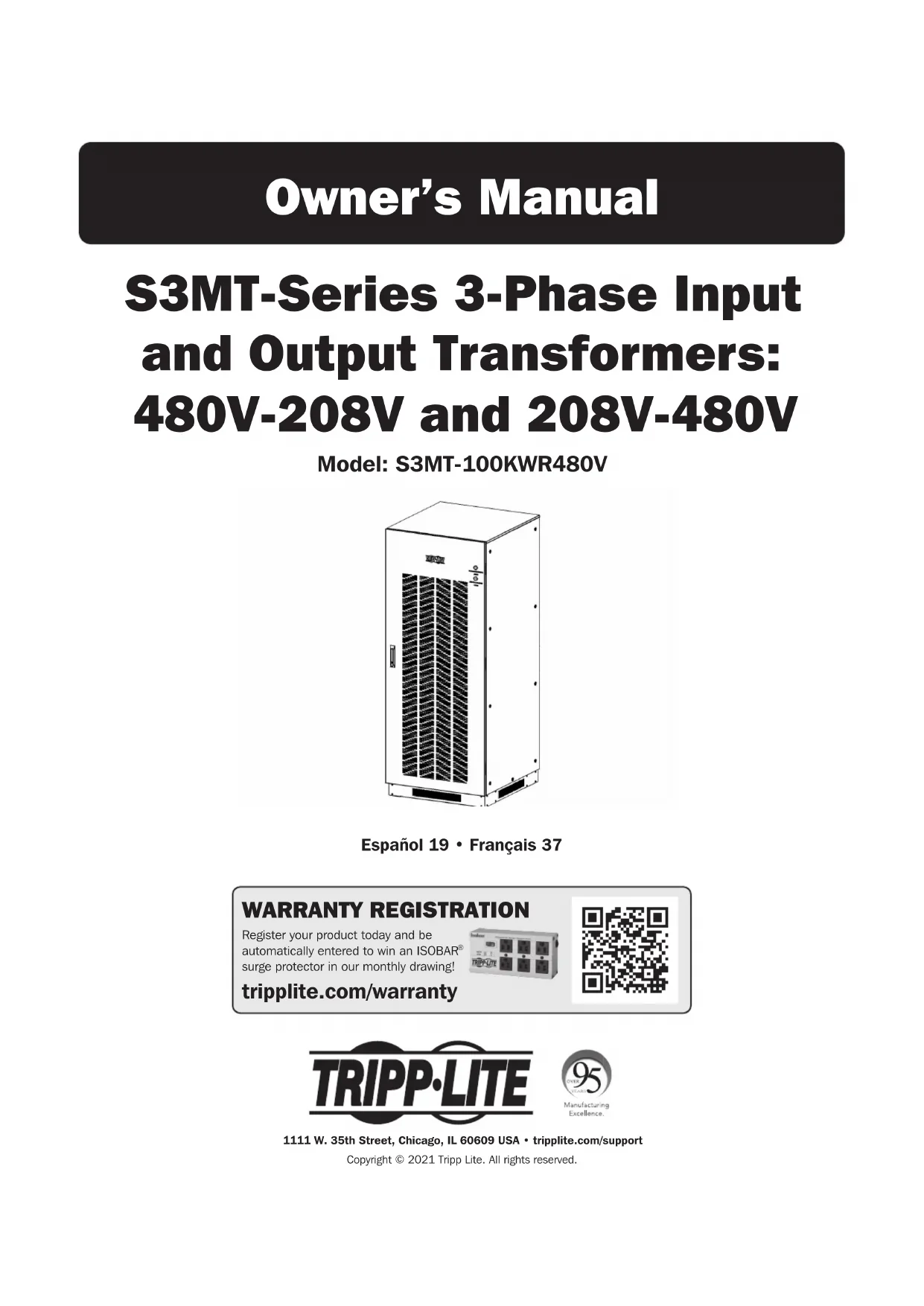 Retrouvez gratuitement la notice de l'appareil S3MT-100KWR480V Tripp Lite au format PDF.