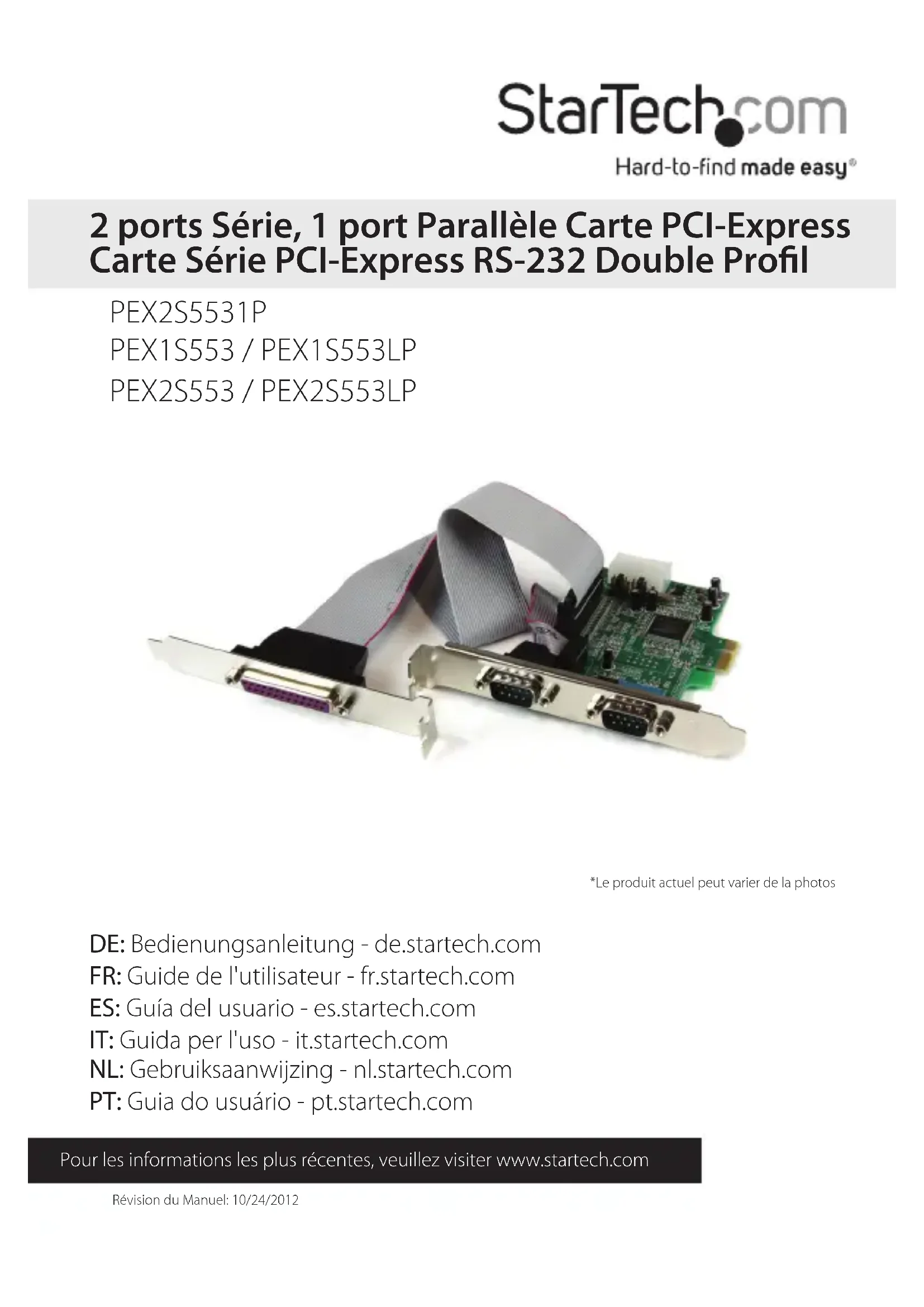 Retrouvez gratuitement la notice de l'appareil PEX1S553 StarTech.com au format PDF.