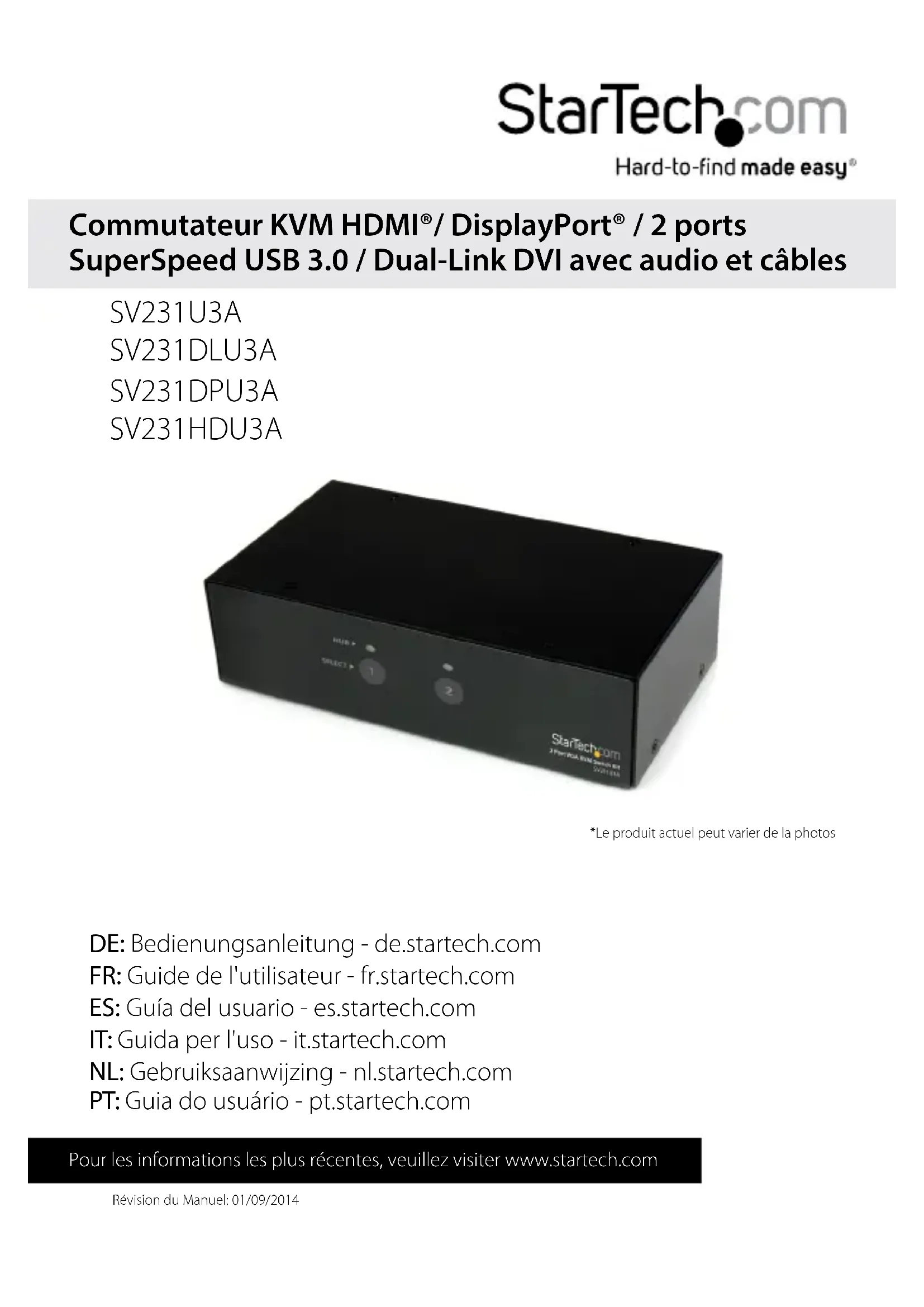 SV231U3A - Commutateur StarTech.com - Notice d'utilisation et mode d'emploi gratuit