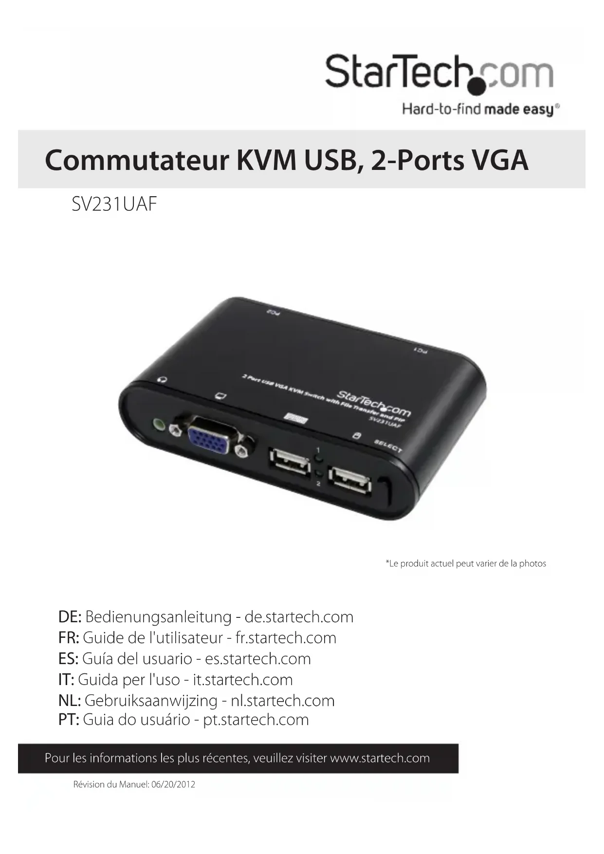 Retrouvez gratuitement la notice de l'appareil SV231UAF StarTech.com au format PDF.