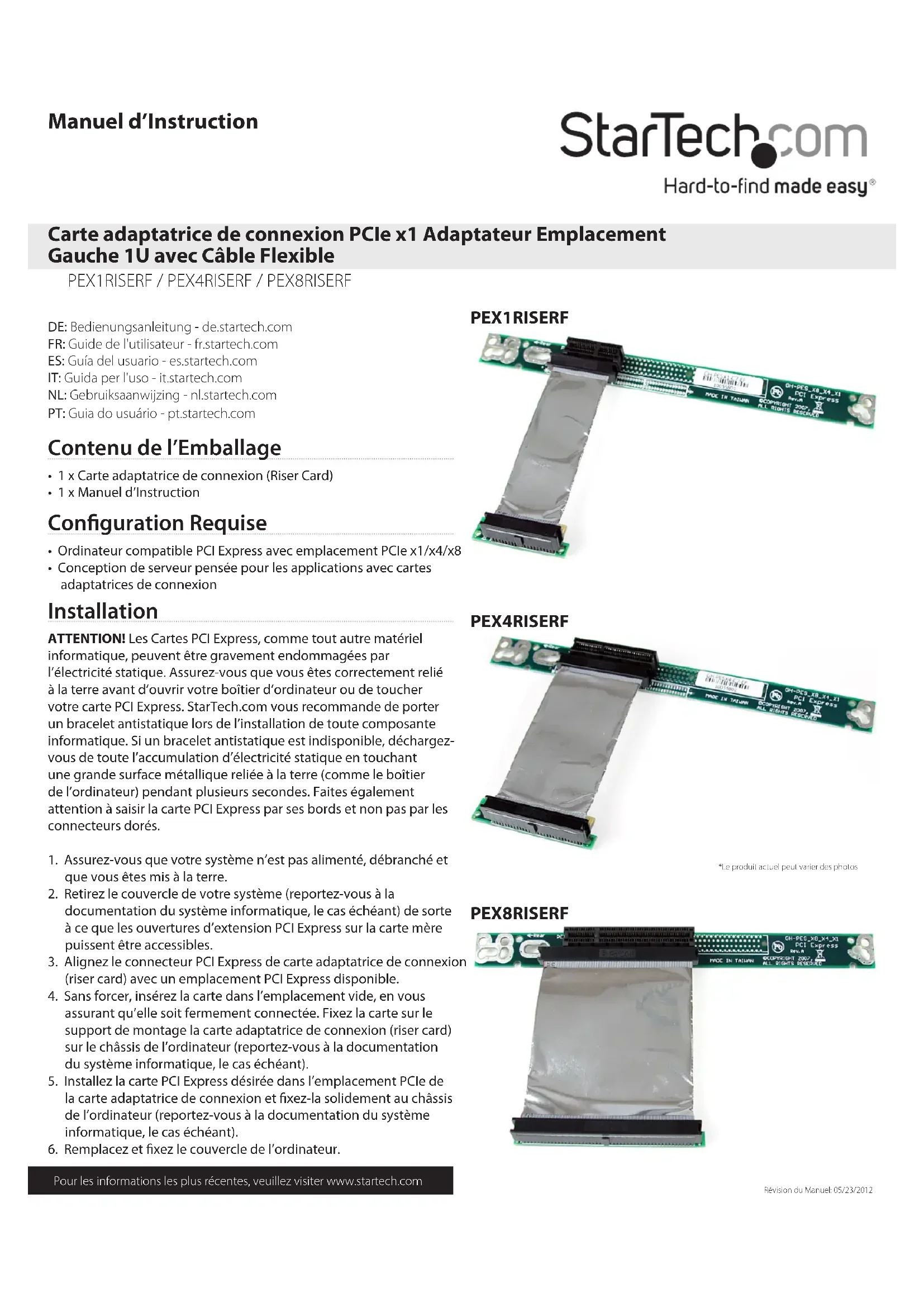 MODE D'EMPLOI PEX1RISERF StarTech.com