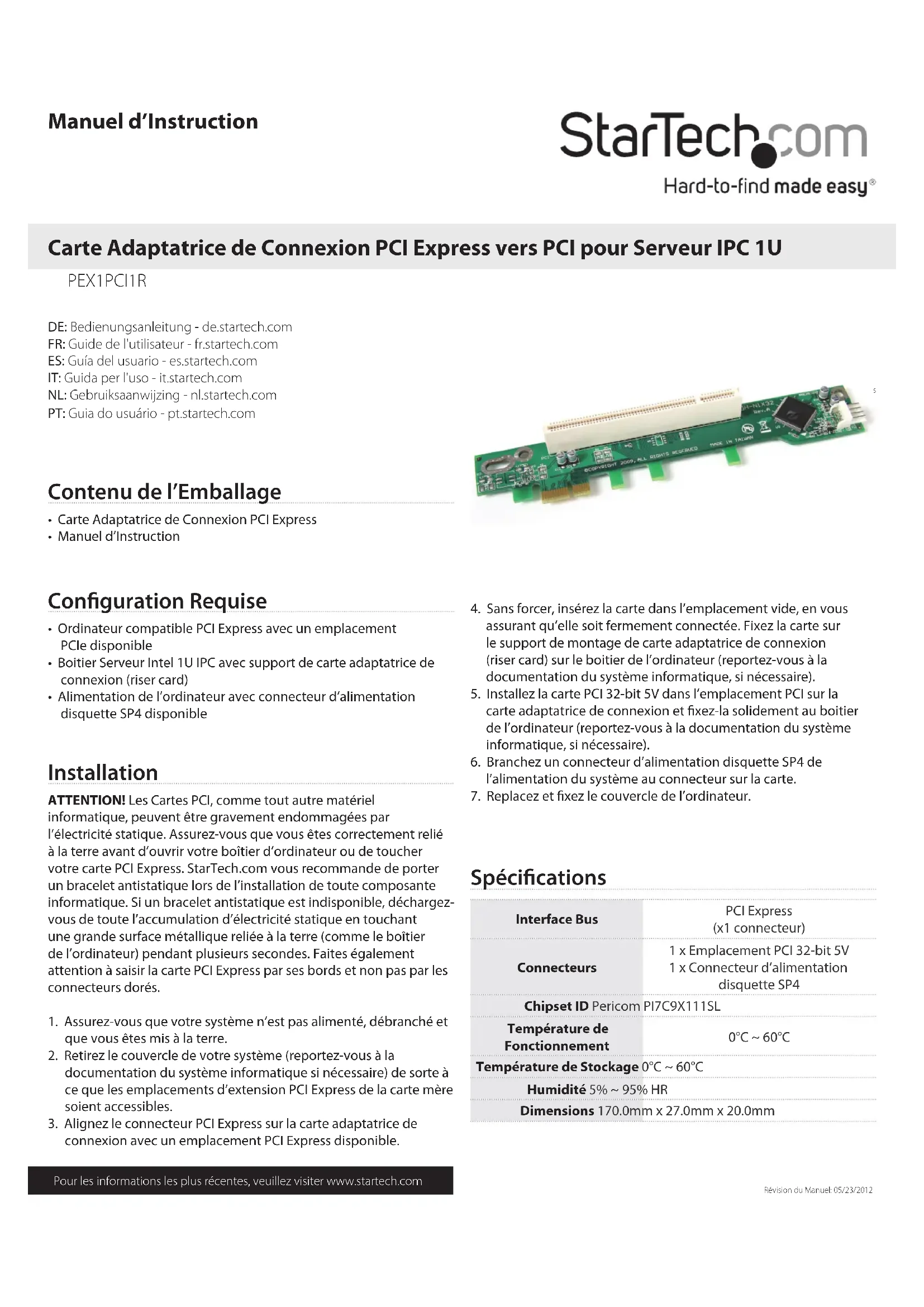PEX1PCI1R - Non catégorisé StarTech.com - Notice d'utilisation et mode d'emploi gratuit