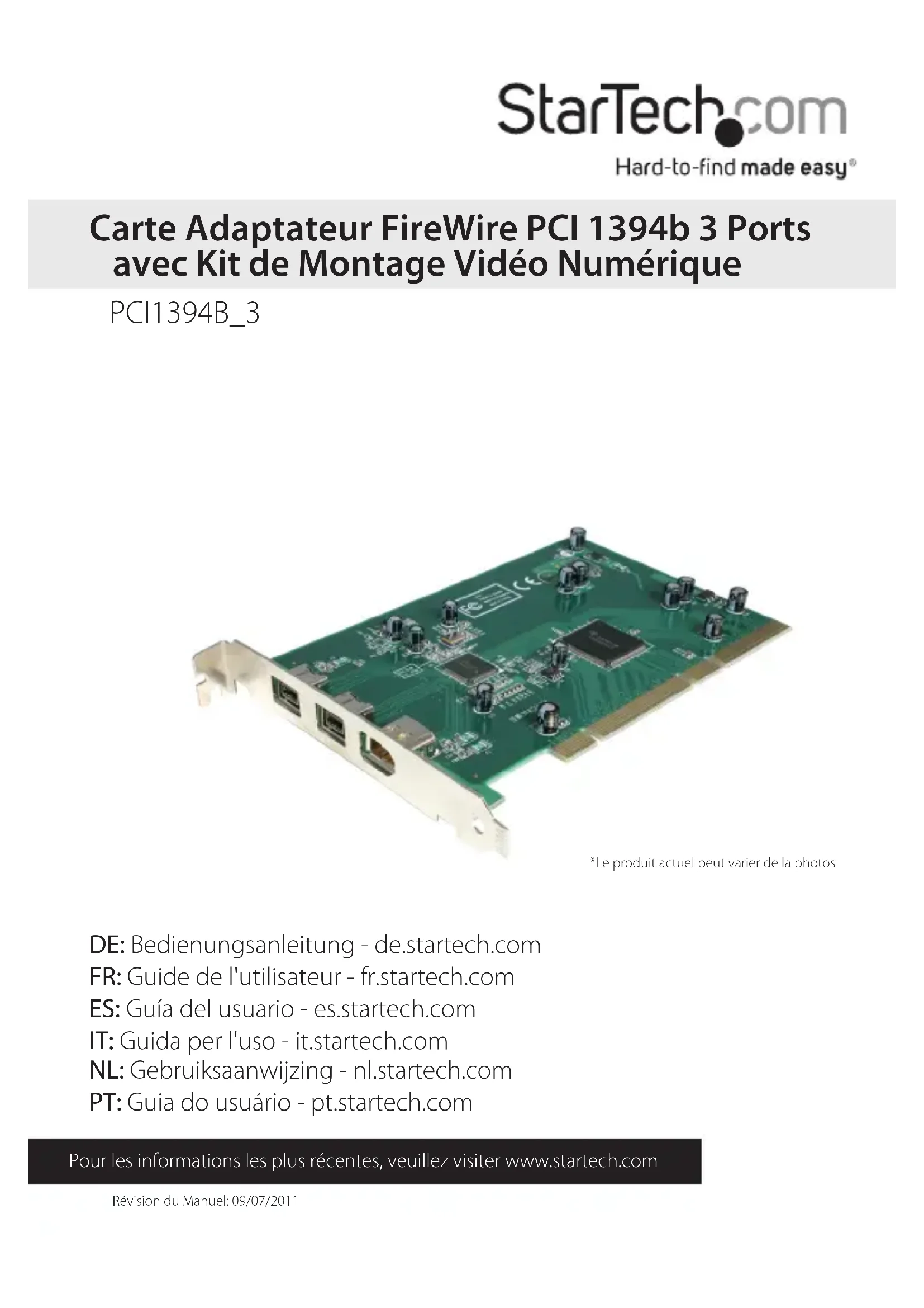 Retrouvez gratuitement la notice de l'appareil PCI1394B_3 StarTech.com au format PDF.