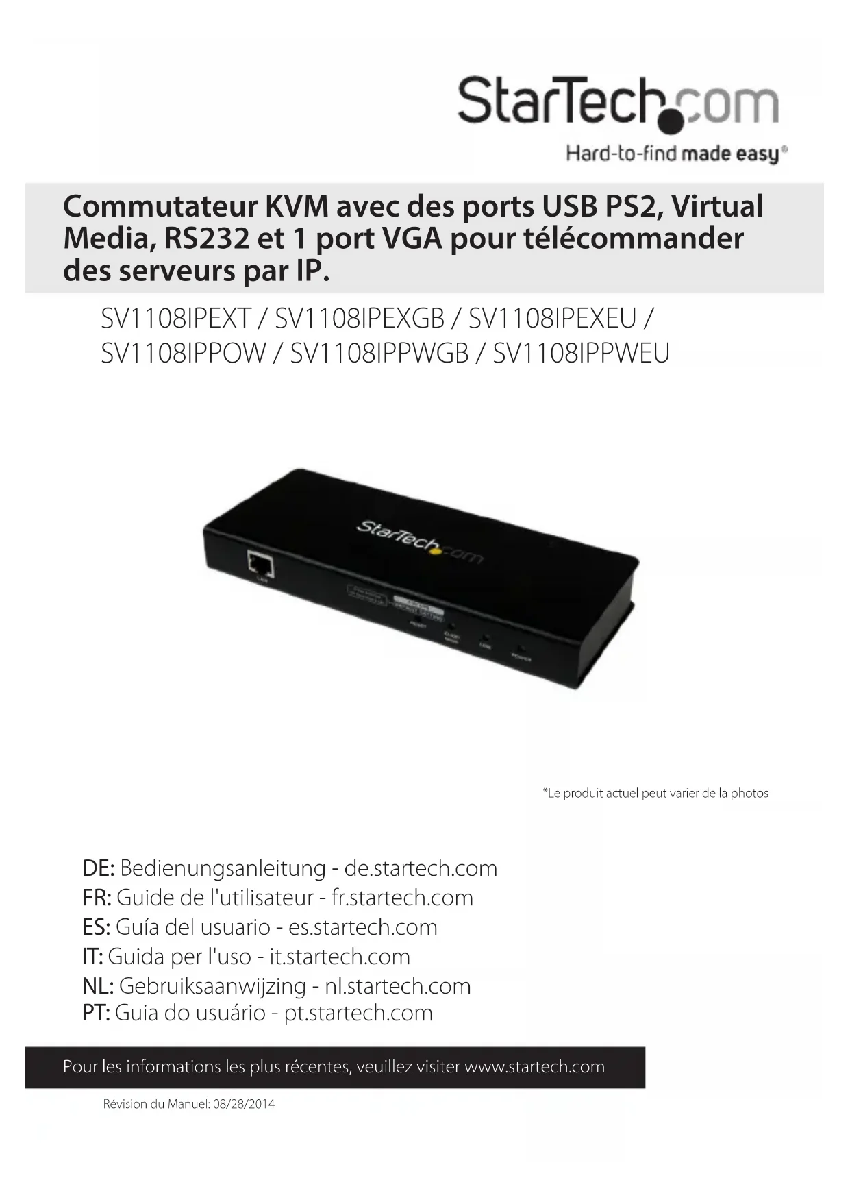 Retrouvez gratuitement la notice de l'appareil SV1108IPPWGB StarTech.com au format PDF.