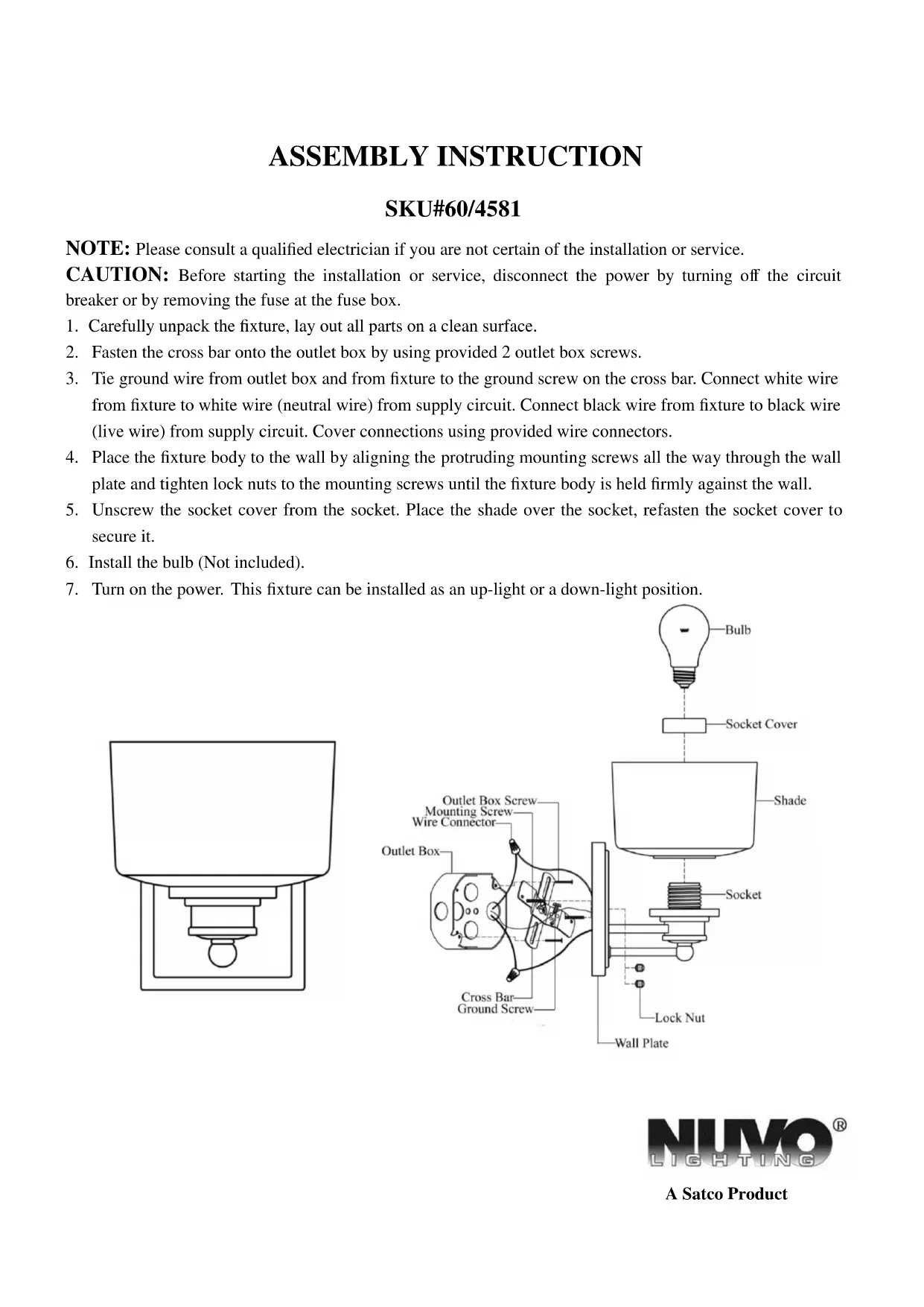 Soho 60/4581 - Éclairage NUVO - Notice d'utilisation et mode d'emploi gratuit