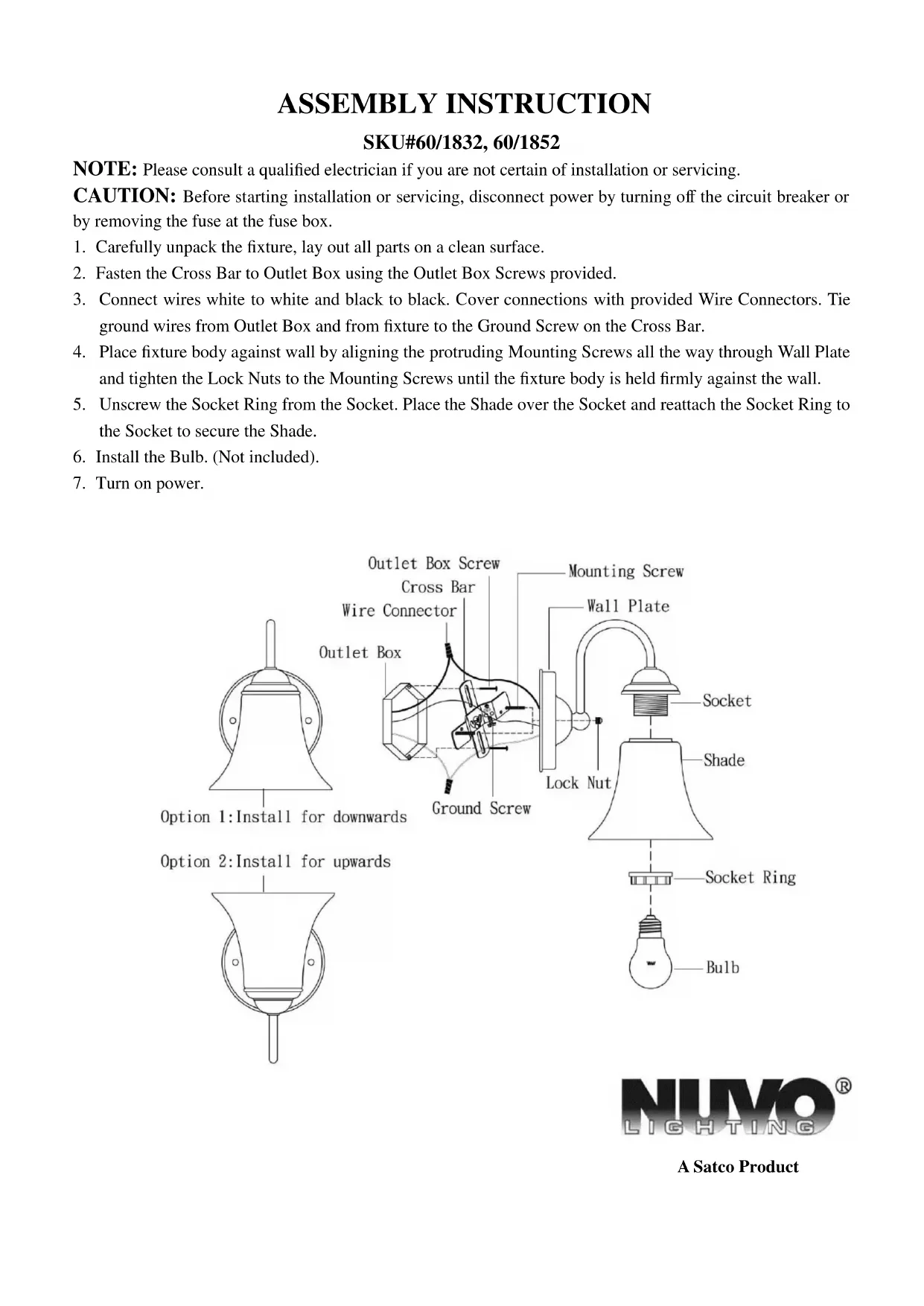 SKU#60/1832, 60/1852 REMARQUE : Si vous avez des incertitudes quant à l'installation, demandez de l'aide à un électricien qualifié. ATTENTION : Avant de commencer l'installation, déconnectez l'alimentation électrique avec le disjoncteur ou en retirant le fusible du disjoncteur. Calfeutrer la surface de montage au sommet et sur les côtés.