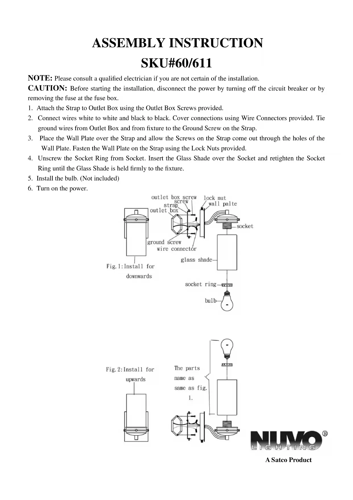 SKU#60/611 REMARQUE: Si vous avez des incertitudes quant à l'installation, demandez de l'aide à un électricien qualifié. ATTENTION: Avant de commencer l'installation, d é connectez l'alimentation é lectrique avec le disjoncteur ou en retirant le fusible du disjoncteur.