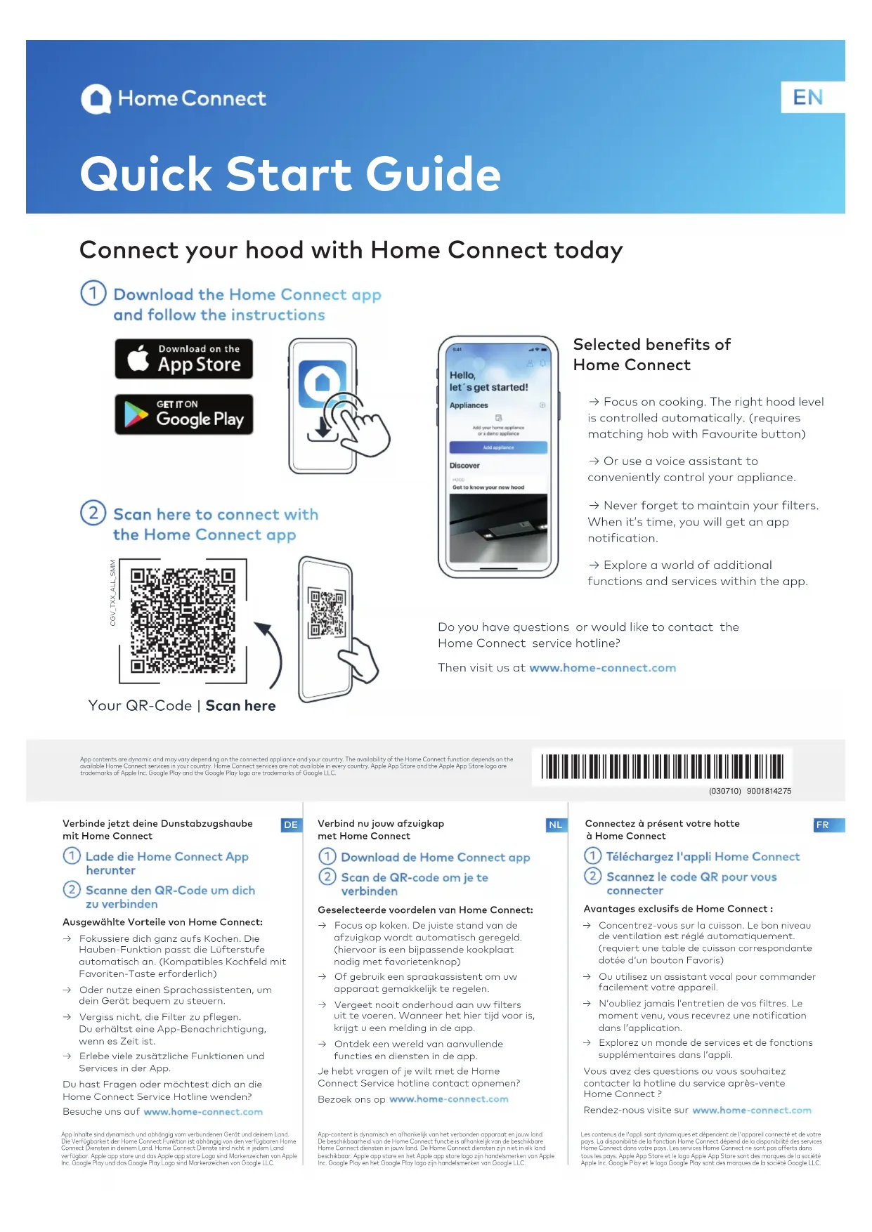 Scannez le code QR pour vous connecter Avantages exclusifs de Home Connect: → Concentrez-vous sur la cuisson. Le bon niveau de ventilation est réglé automatiquement. (requiert une table de cuisson correspondante dotée d‘un bouton Favoris)